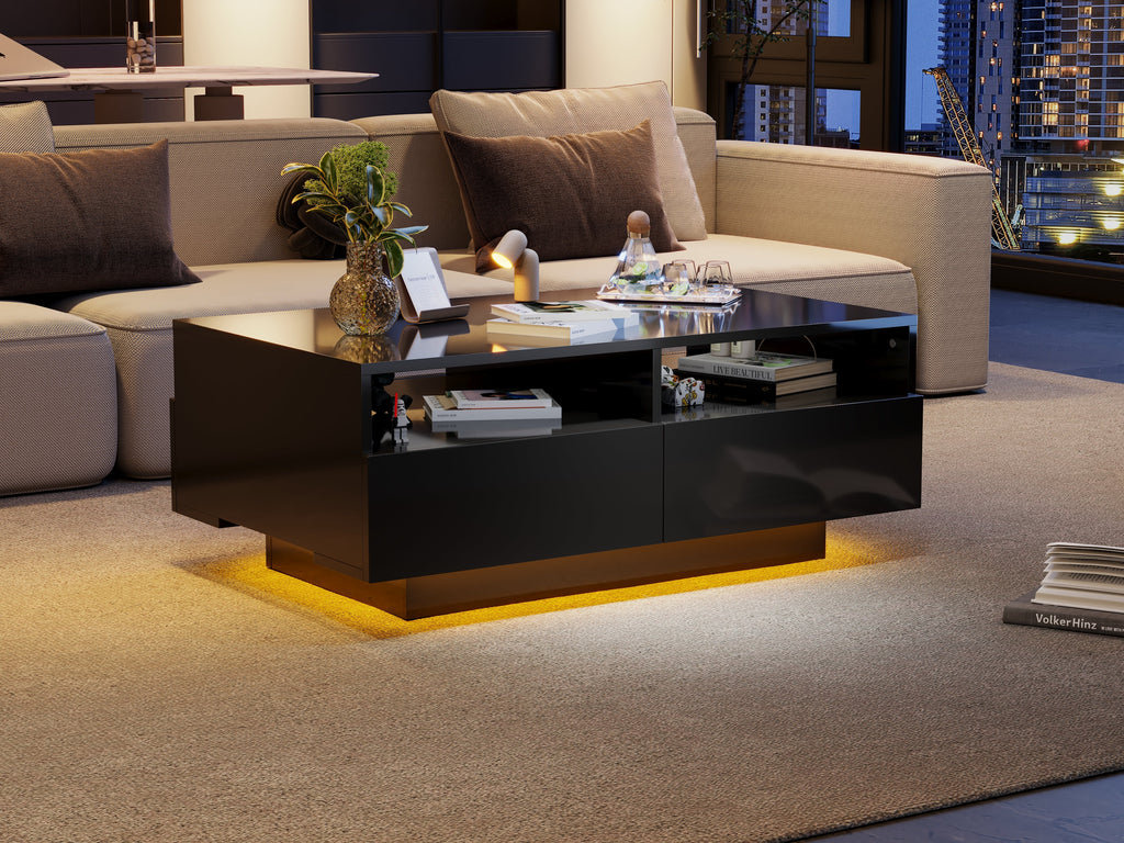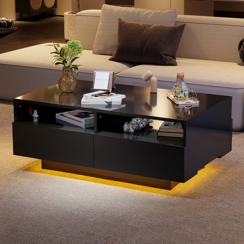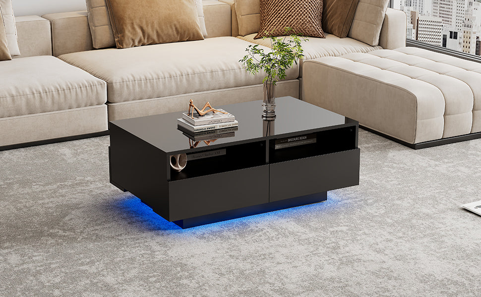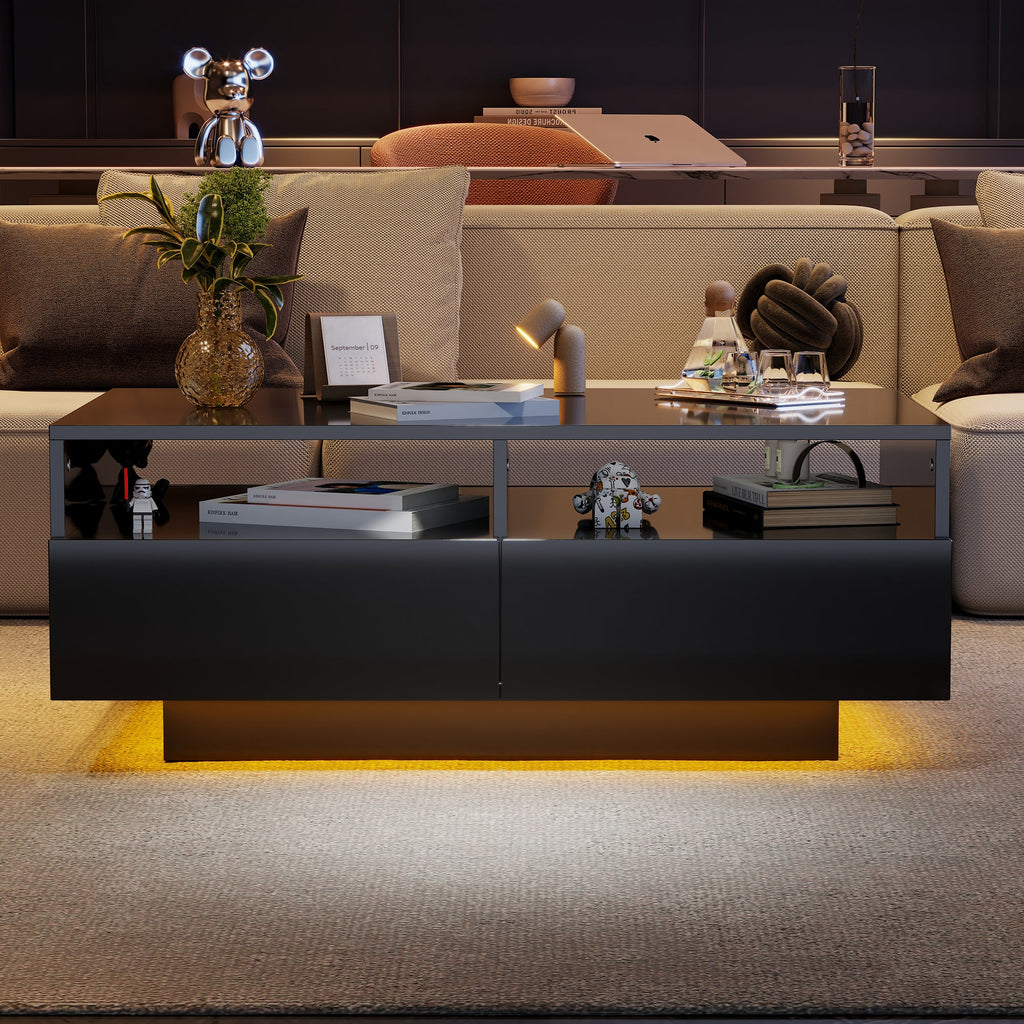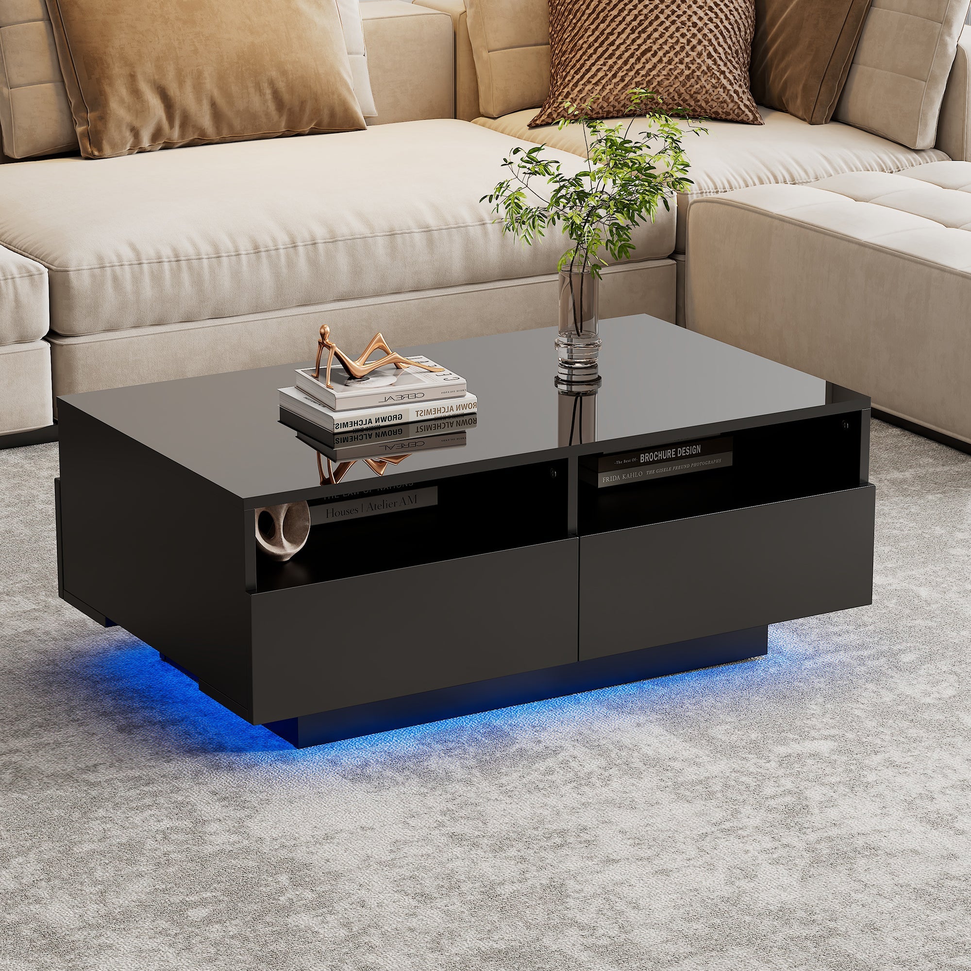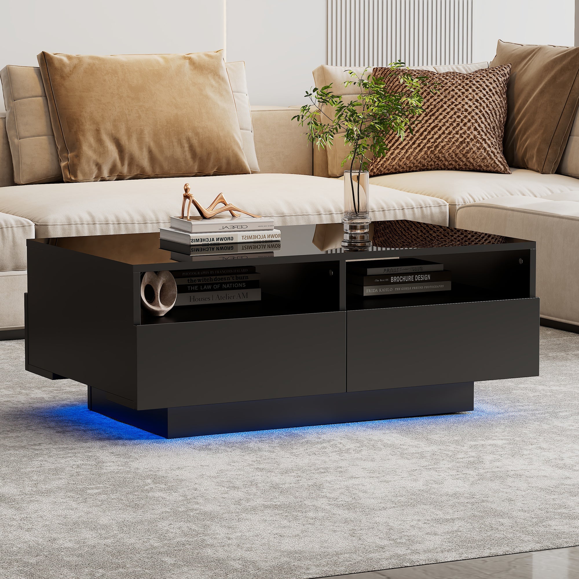 LED Coffee Table with 4 Drawers, Modern Center Table with 16 Colors LED Lights, High-Gloss
