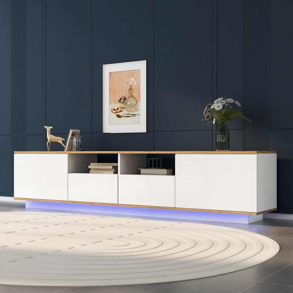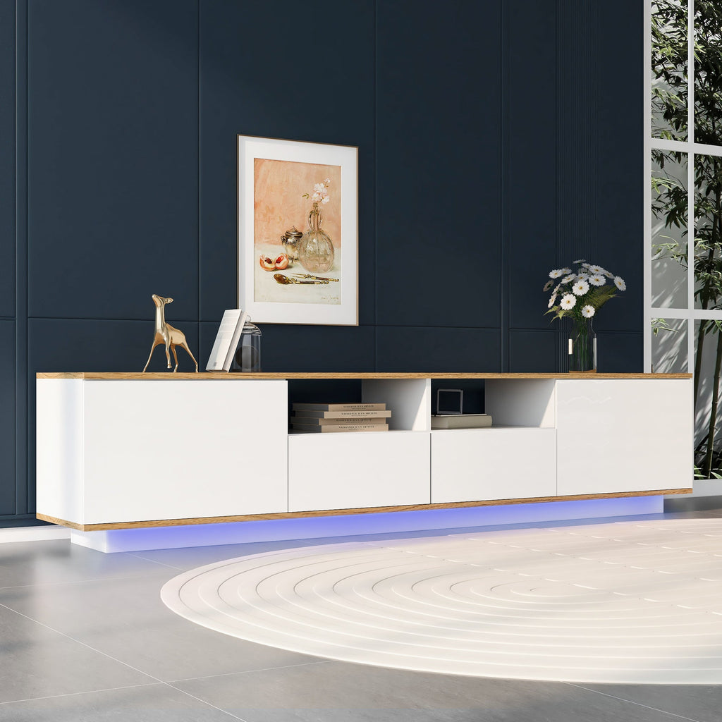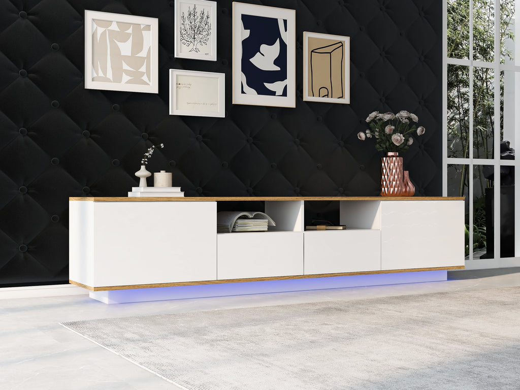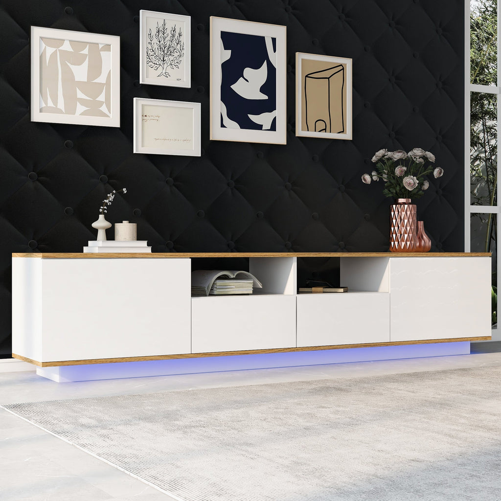 LED Lowboard, Modern Industrial TV Cabinet for 80-inch TVs, White