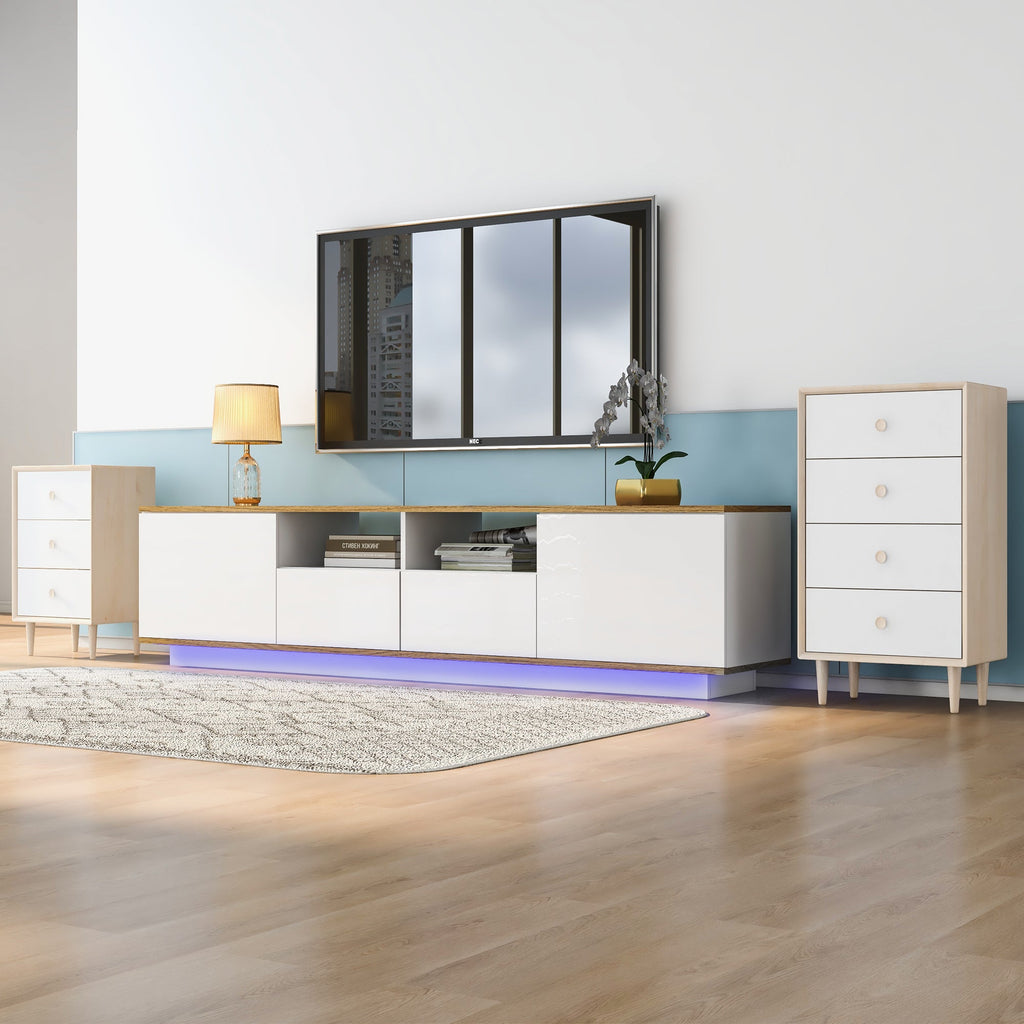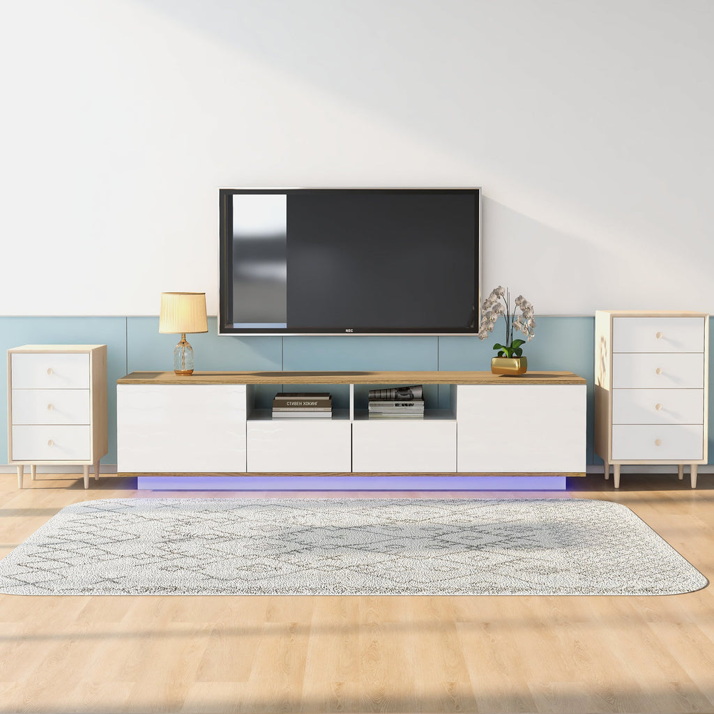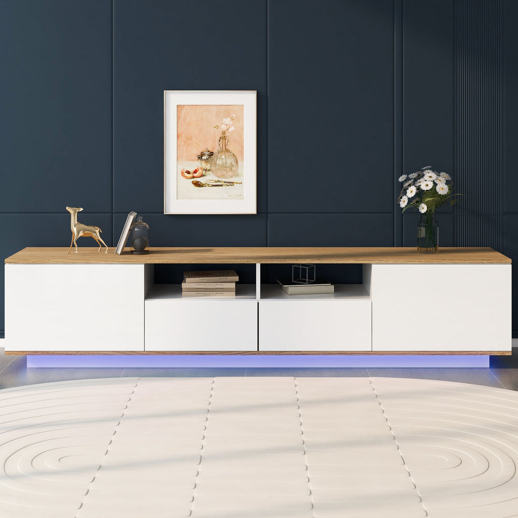LED Lowboard, Modern Industrial TV Cabinet for 80-inch TVs, White