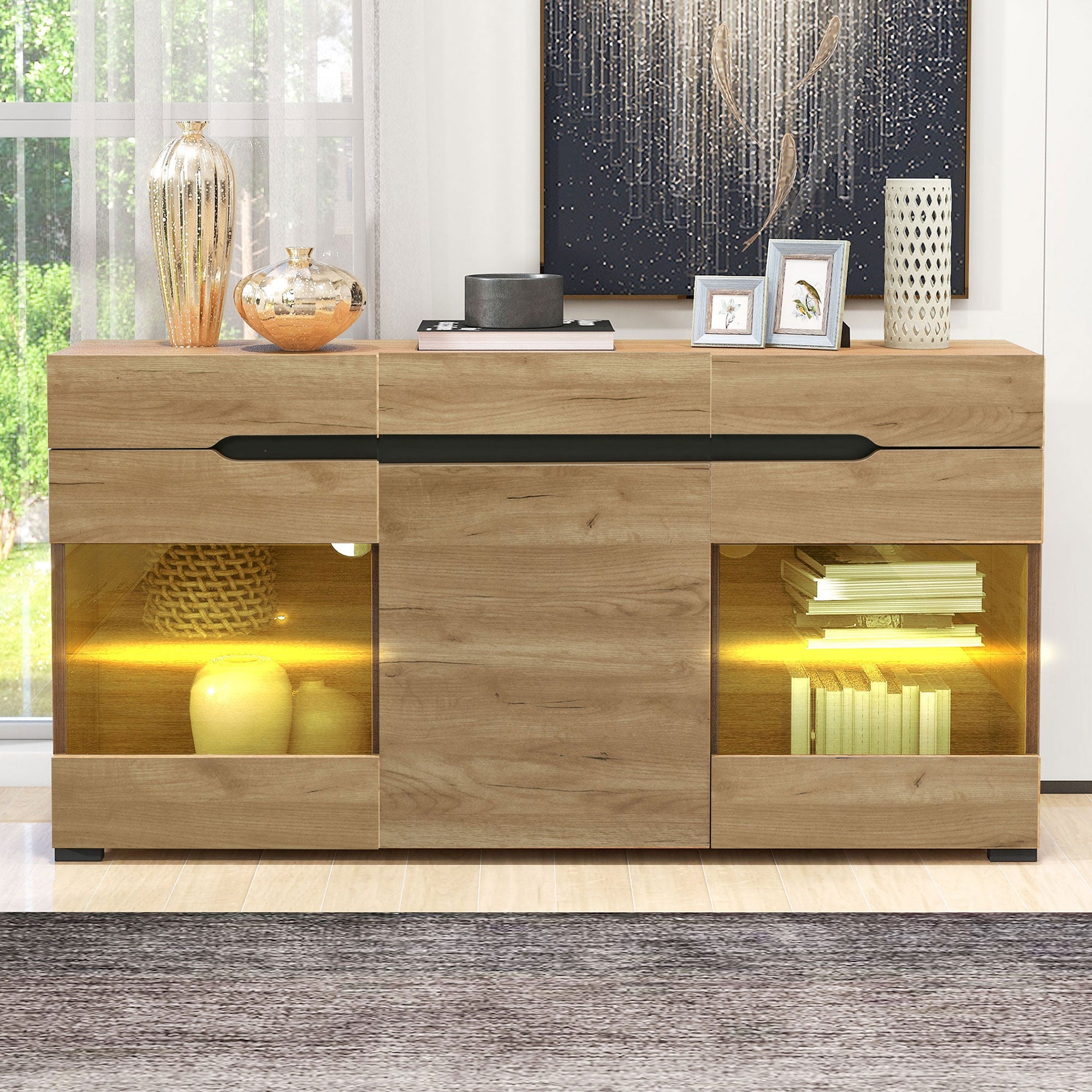 LED Sideboard, Modern Living Room Furniture with 3 Doors & 3 Drawers