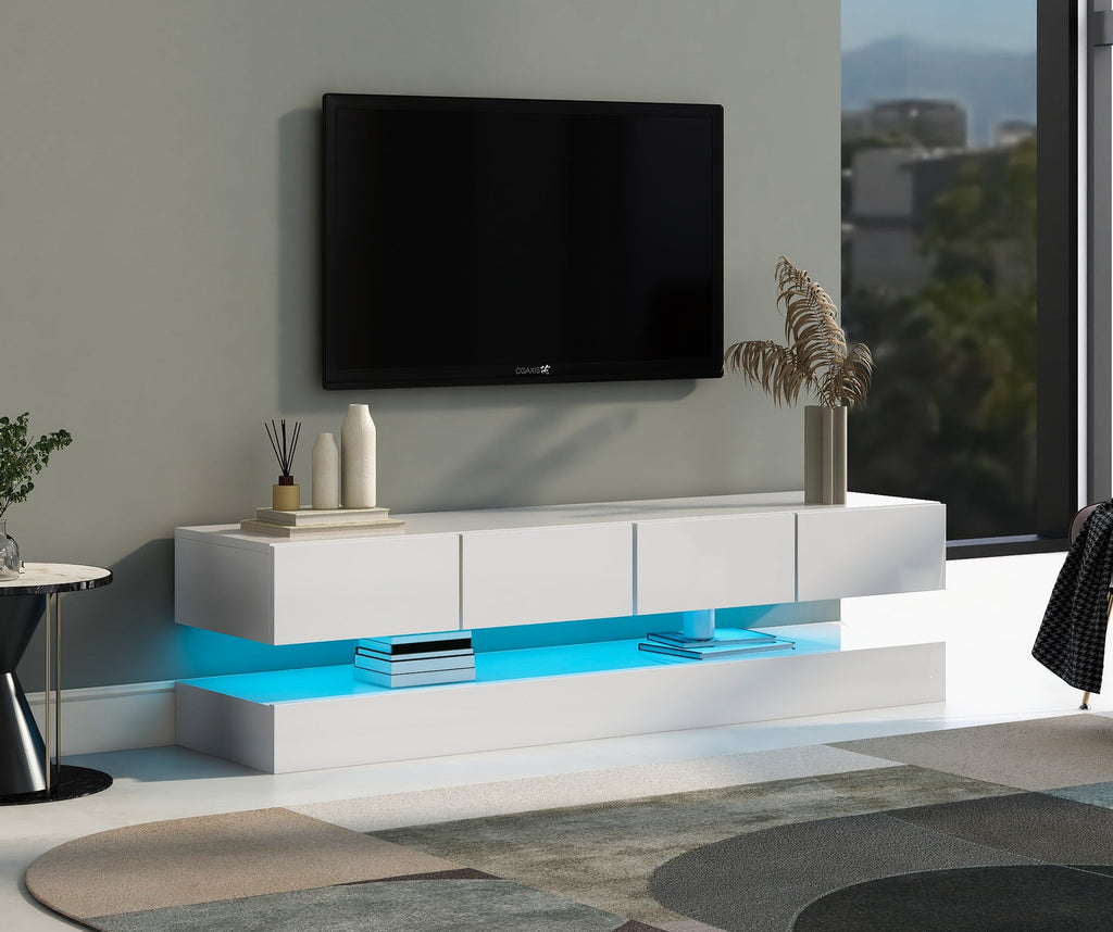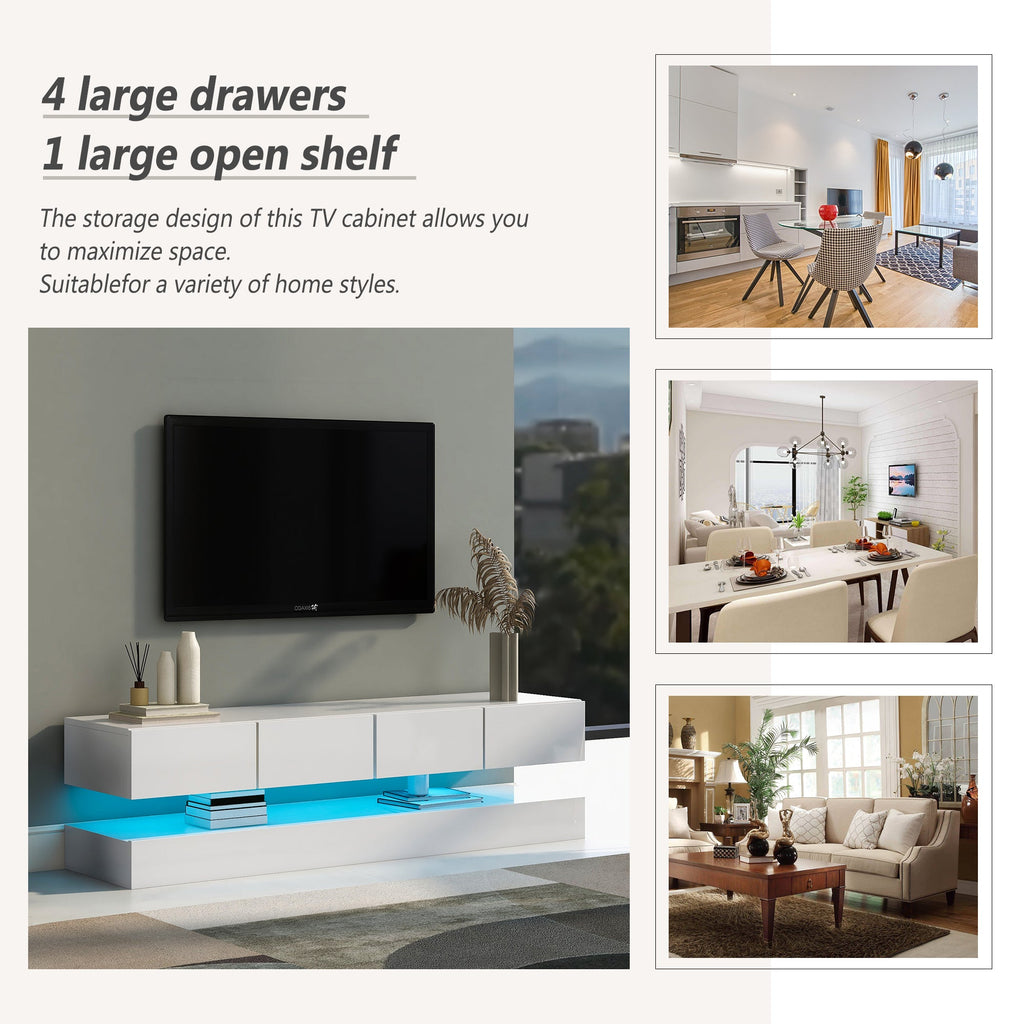 LED TV Lowboard with 2 Cabinets, 4 Drawers & 16-Color LED Lighting for up to 55-Inch TVs, White