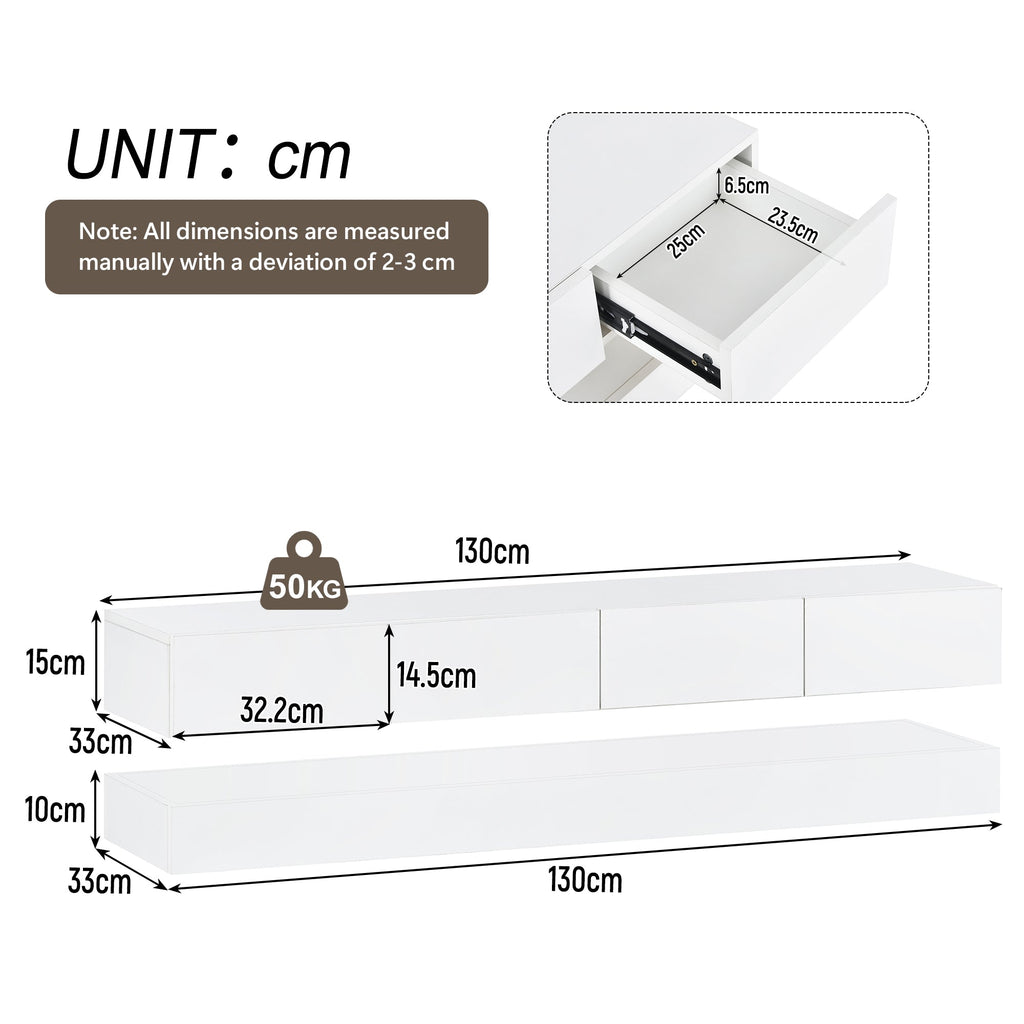 Top (130 x 33 x 15 cm), Bottom (130 x 33 x 10 cm)
