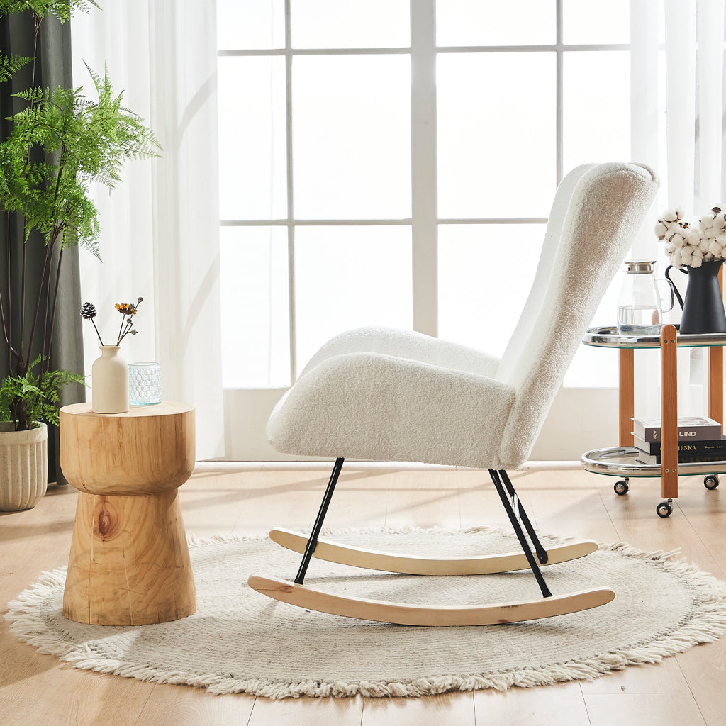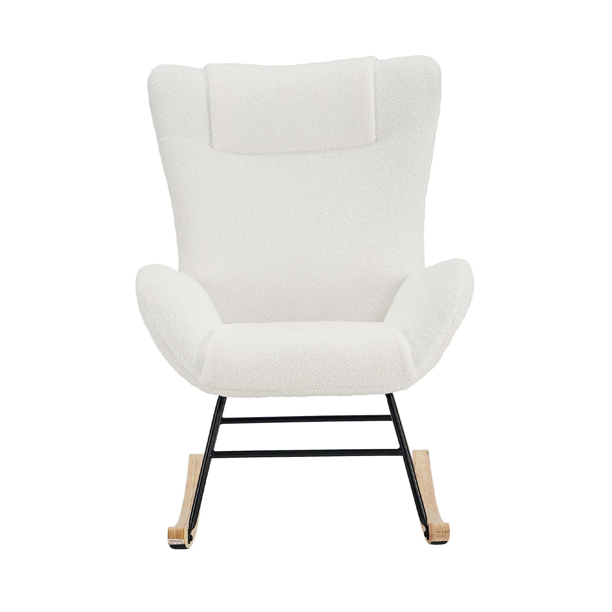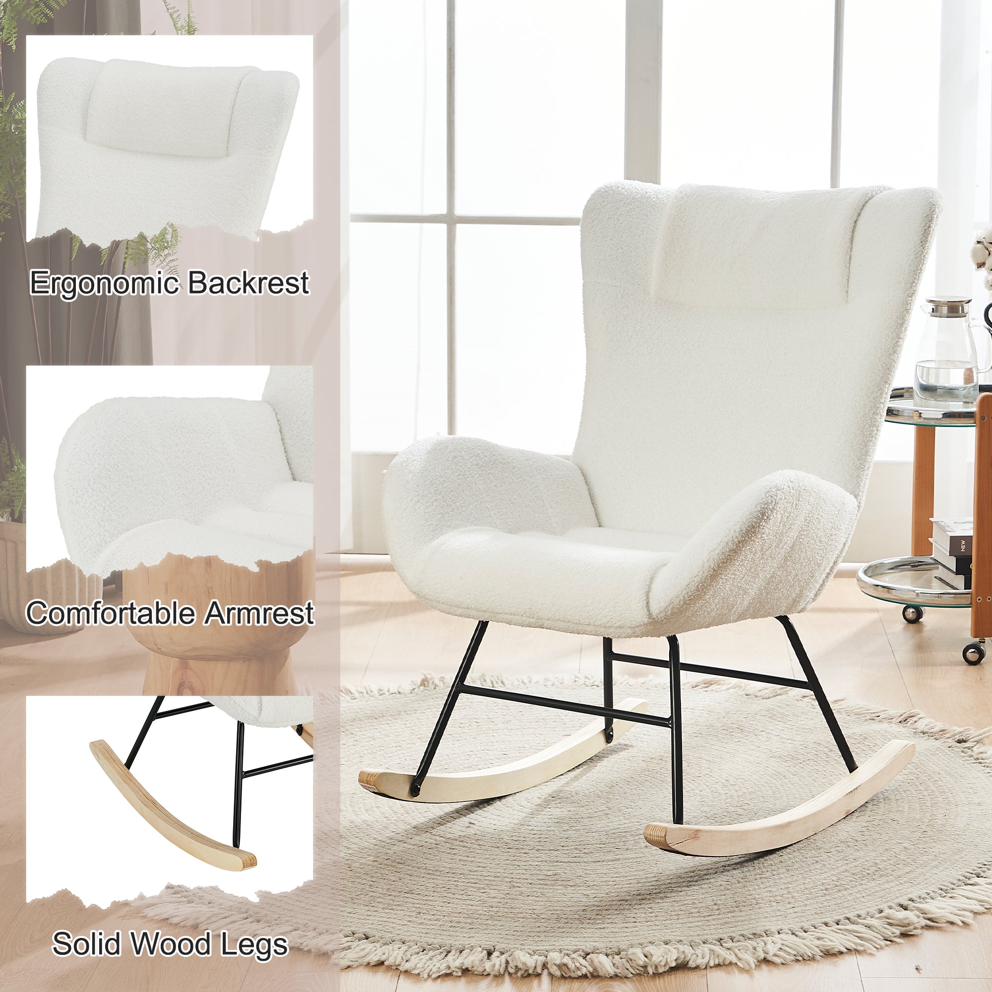 Leisure Rocking Chair with Armrests and Ergonomic Backrest, White Teddy Velvet