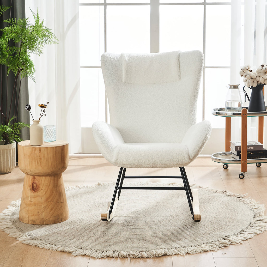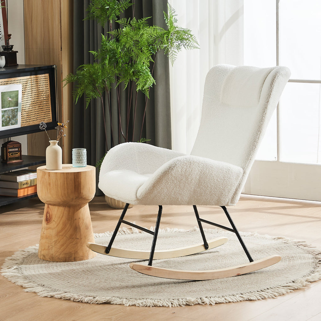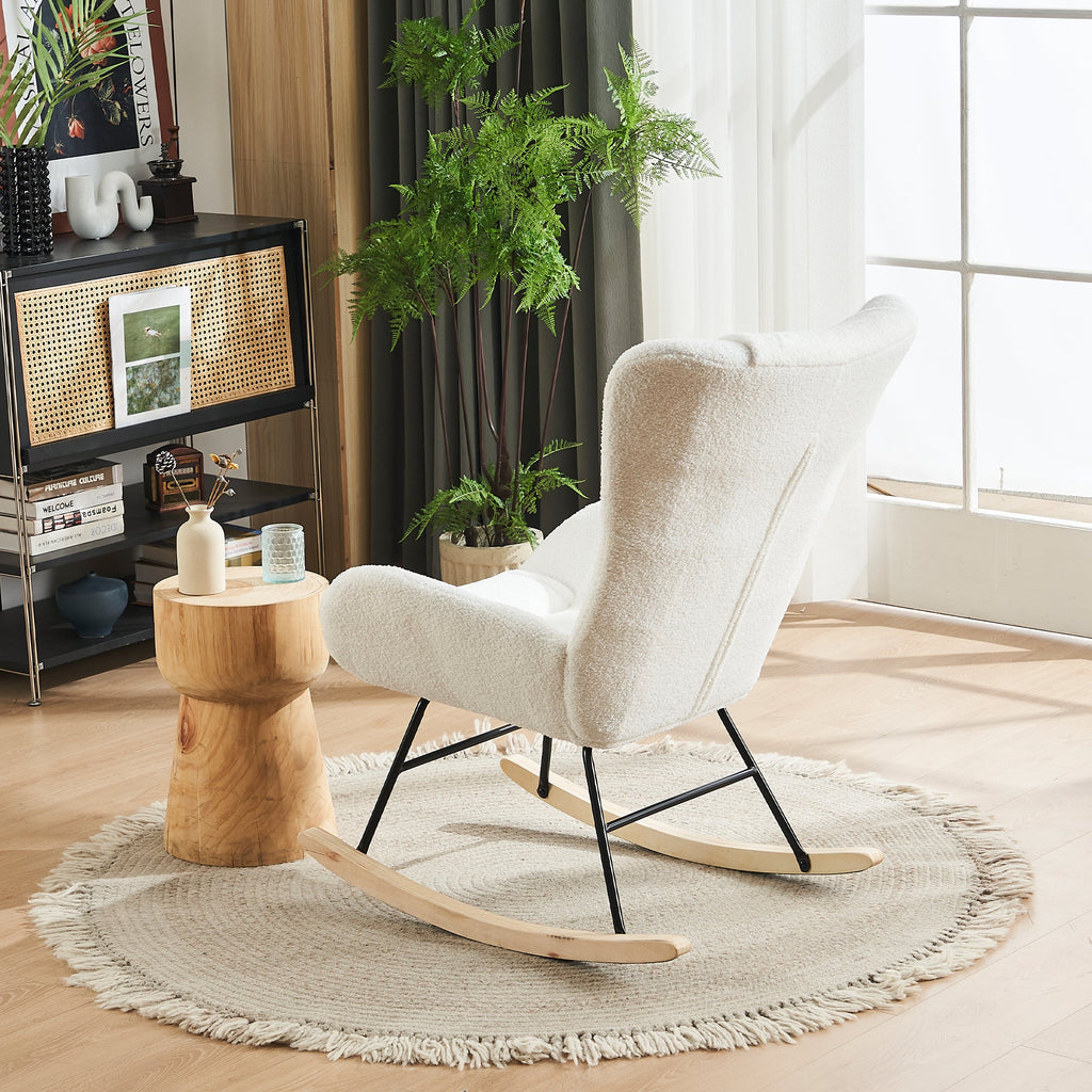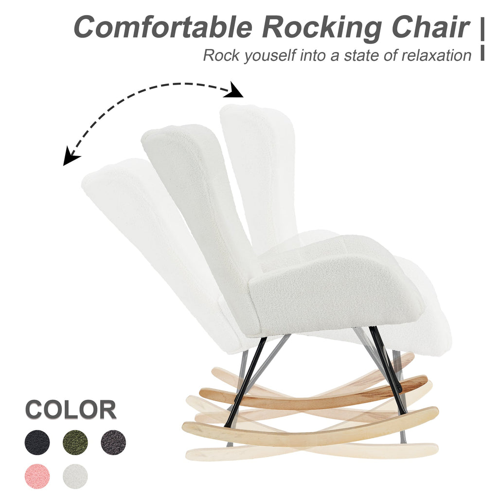 Leisure Rocking Chair with Armrests and Ergonomic Backrest, White Teddy Velvet