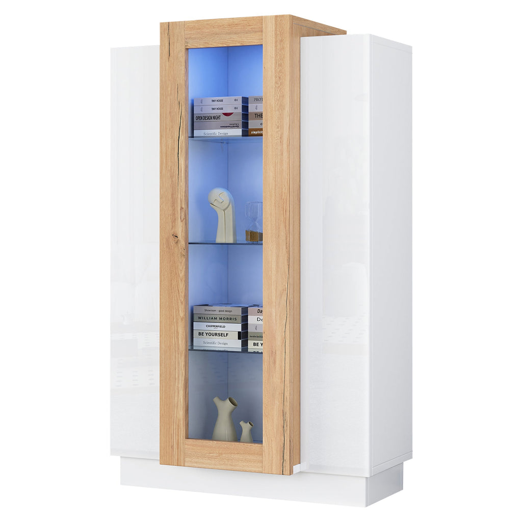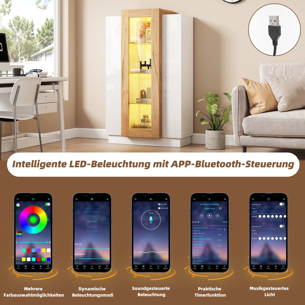 This 74 x 40 x 120 cm living room display cabinet features a four-layer, three-dimensional structure with glass partitions for optimal spatial display. The LED light strip is controlled via a mobile app, and the transparent acrylic cabinet doors create a diverse atmosphere.