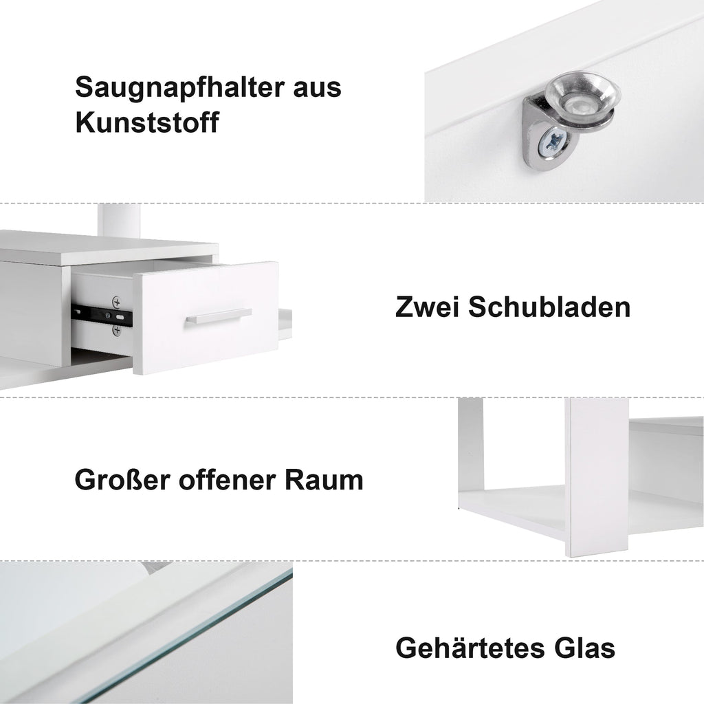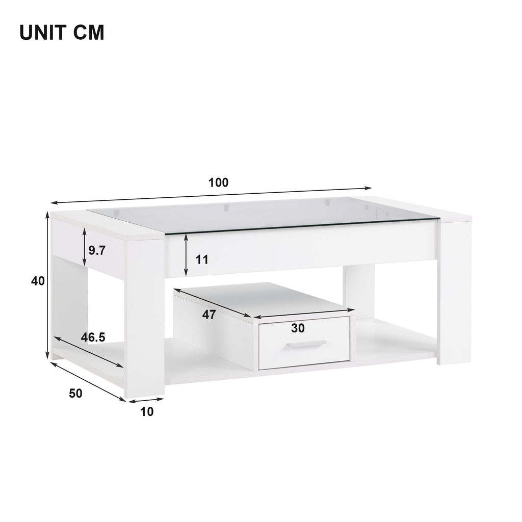 Living Room Coffee Table with Glass Top, Lockers, and Storage, White (100 x 50 x 40cm)