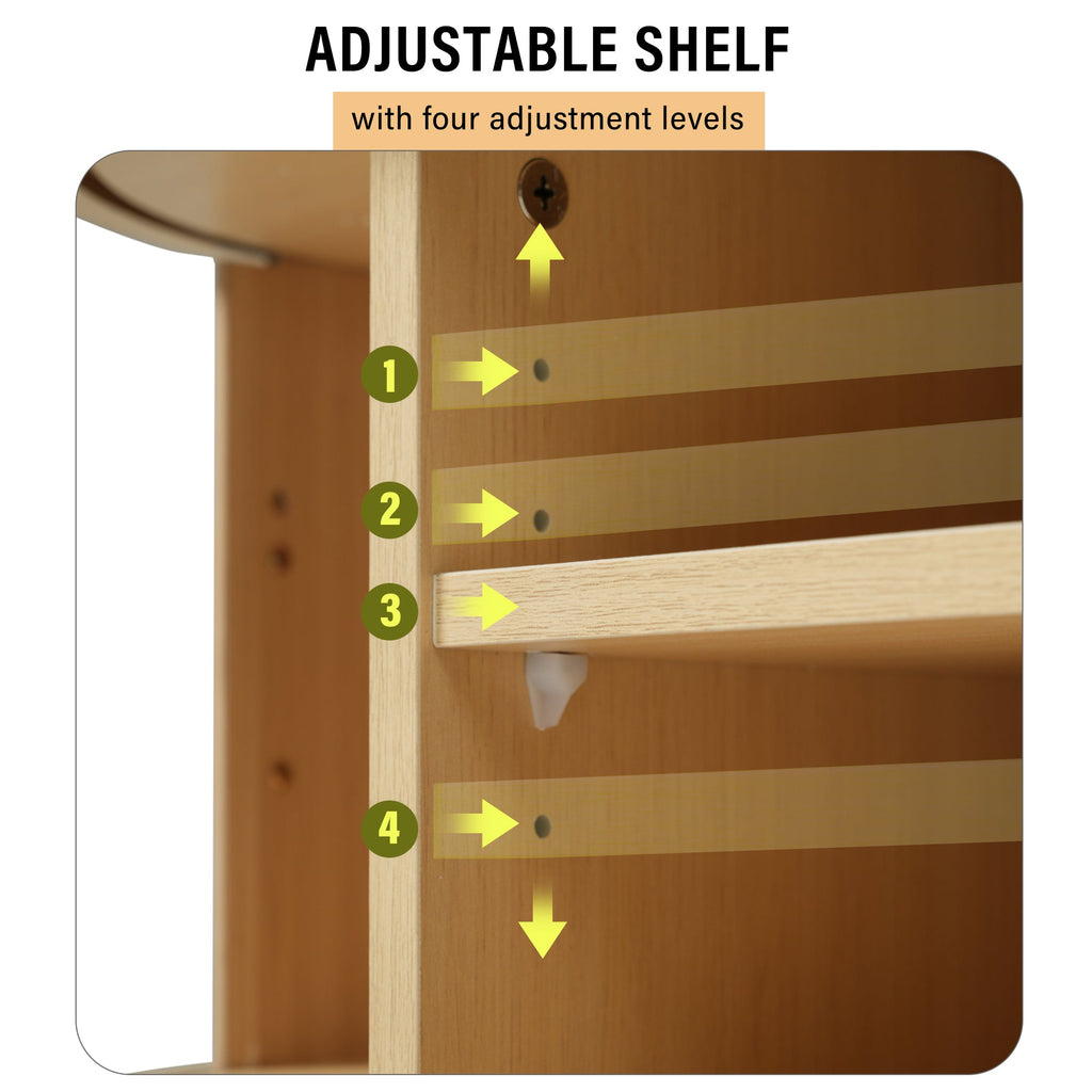 Living Room TV Cabinet with Storage, Round Table Top, 2 Drawers, MDF Wood Grain