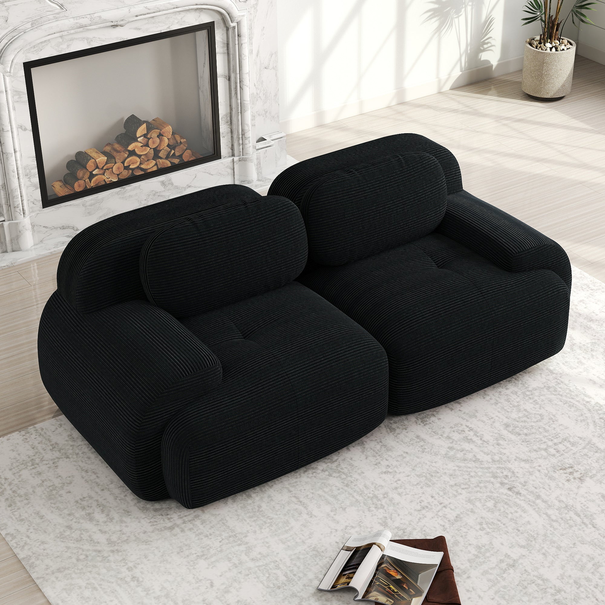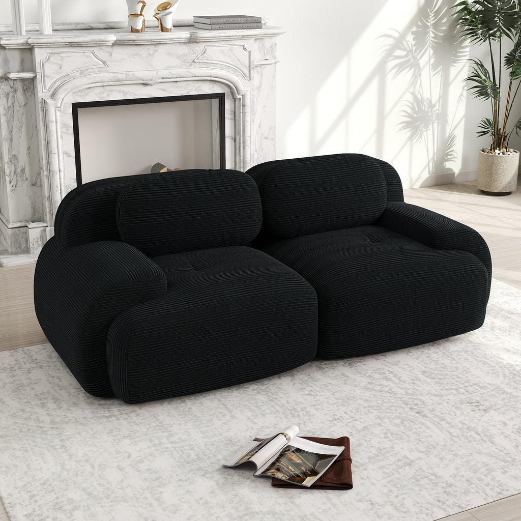 Loveseat Sofa, 82'' Modular Curved Armrests Non-Slip, Corduroy Black