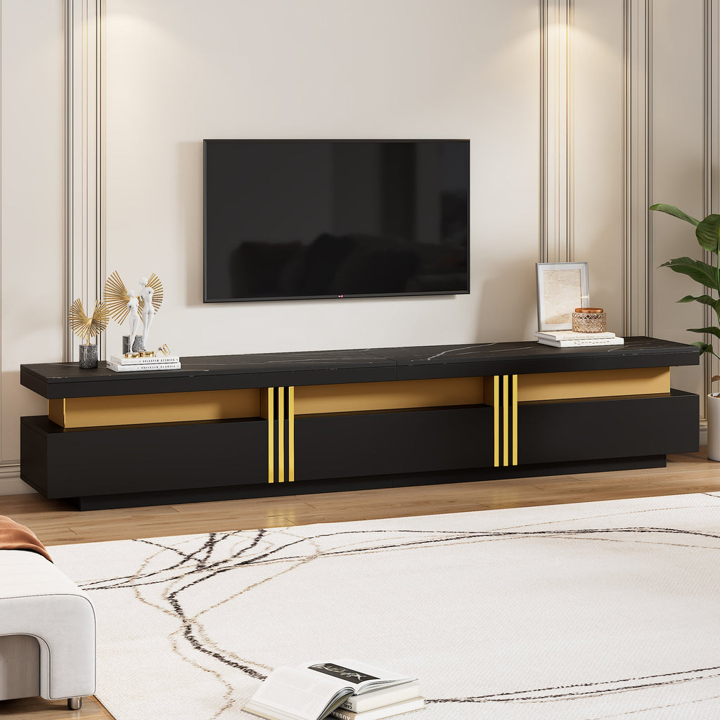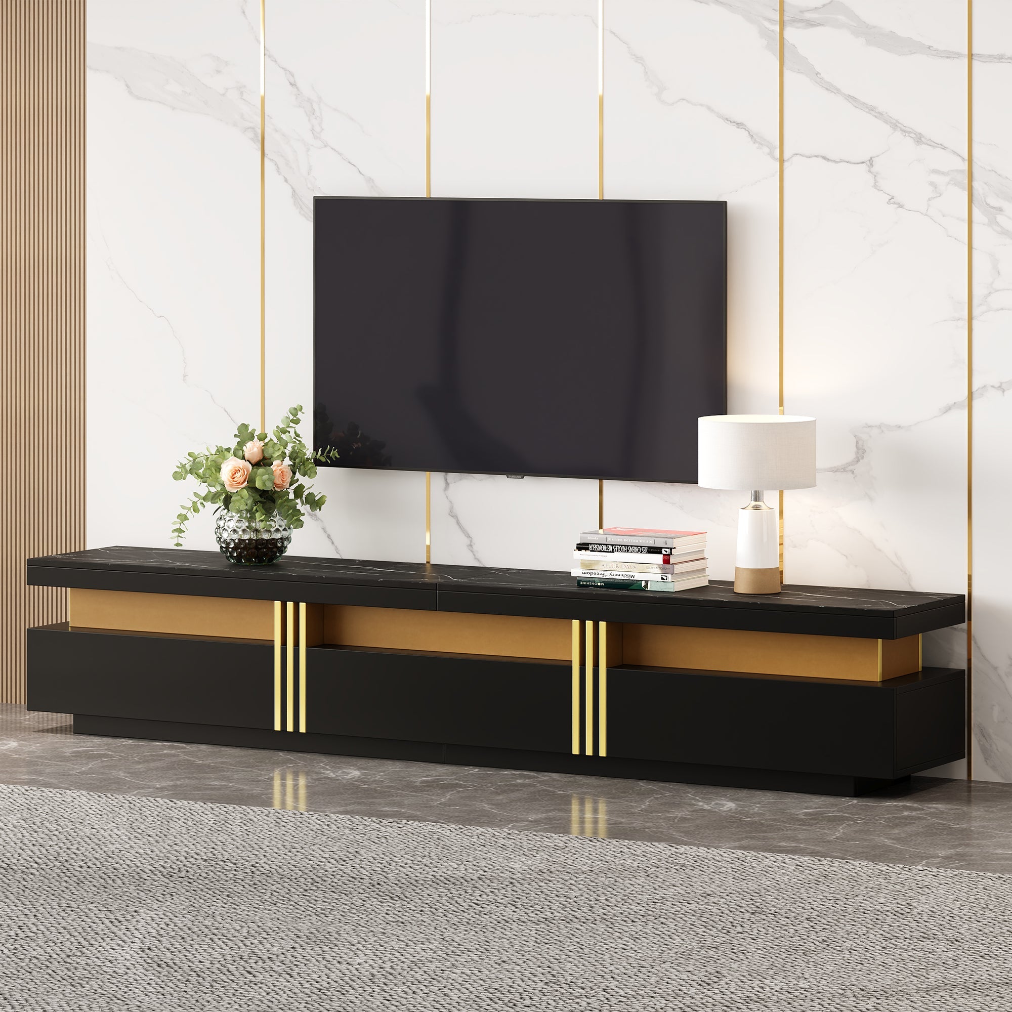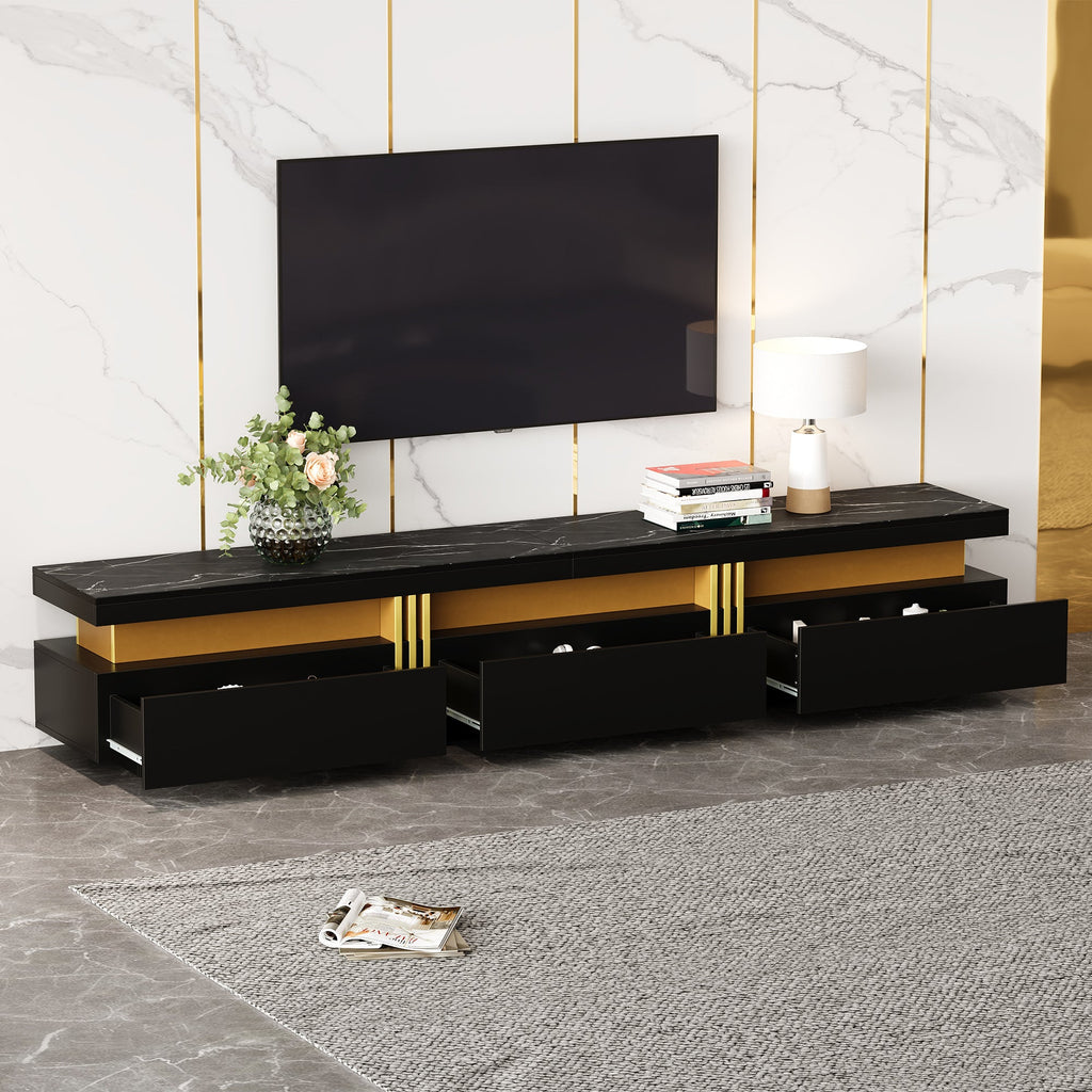 Lowboard TV Cabinet, Modern Marble Look with 3 Drawers, for up to 90-inch TVs