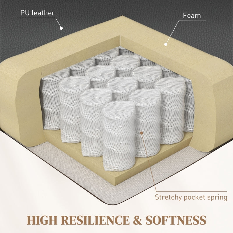 Thick, all-over padding enhances comfort, allowing you to sink in and relax. Features a pocket spring system, high back, and armrests for support.