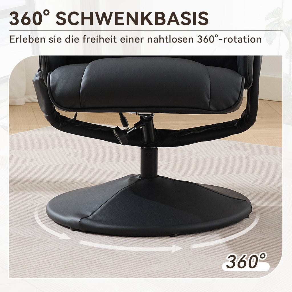Massage Chair: Reclining, Heating & Stool, 360° Rotation, Black PU Fabric
