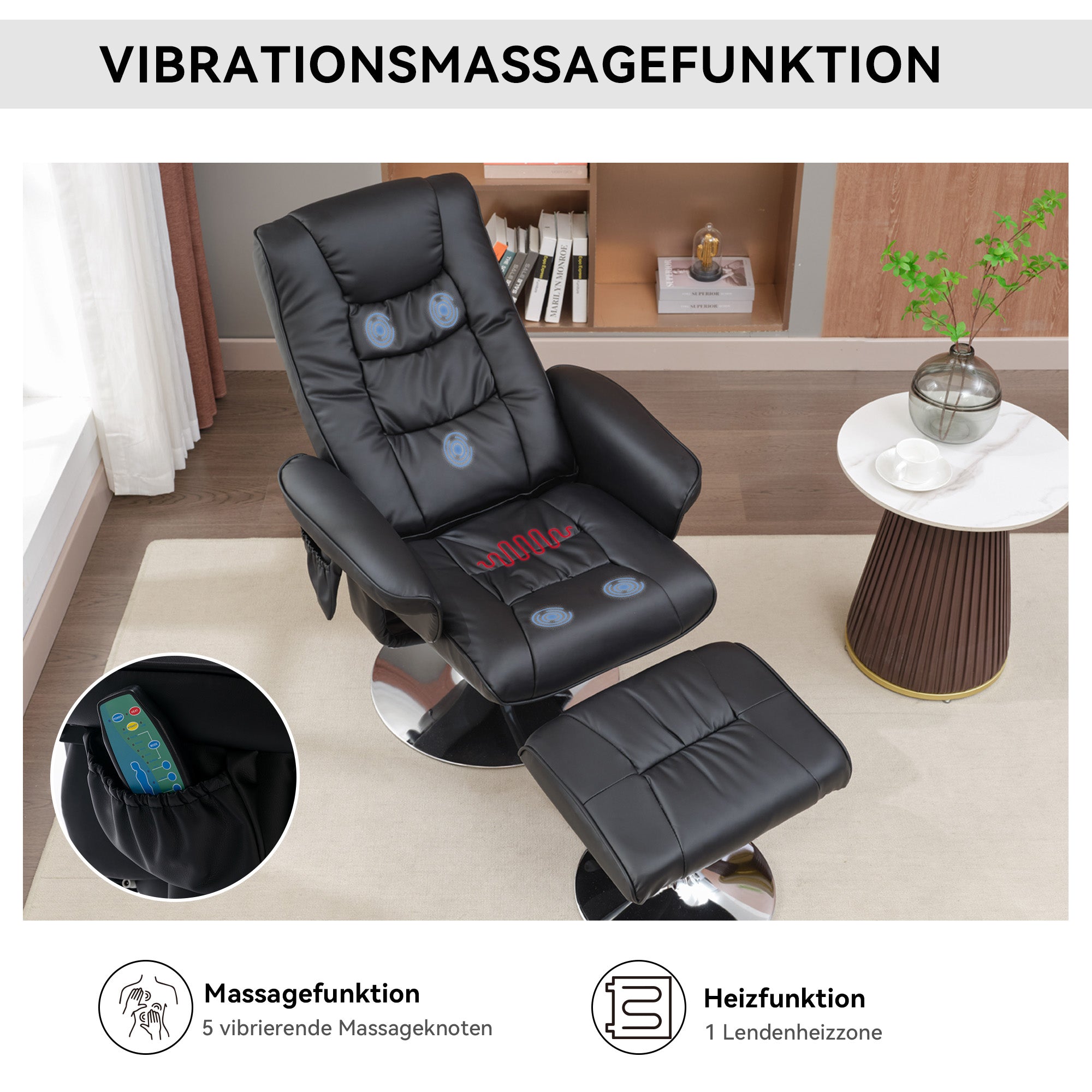Massage Chair with Ottoman, 5-Point Massager, PU Upholstery, Black