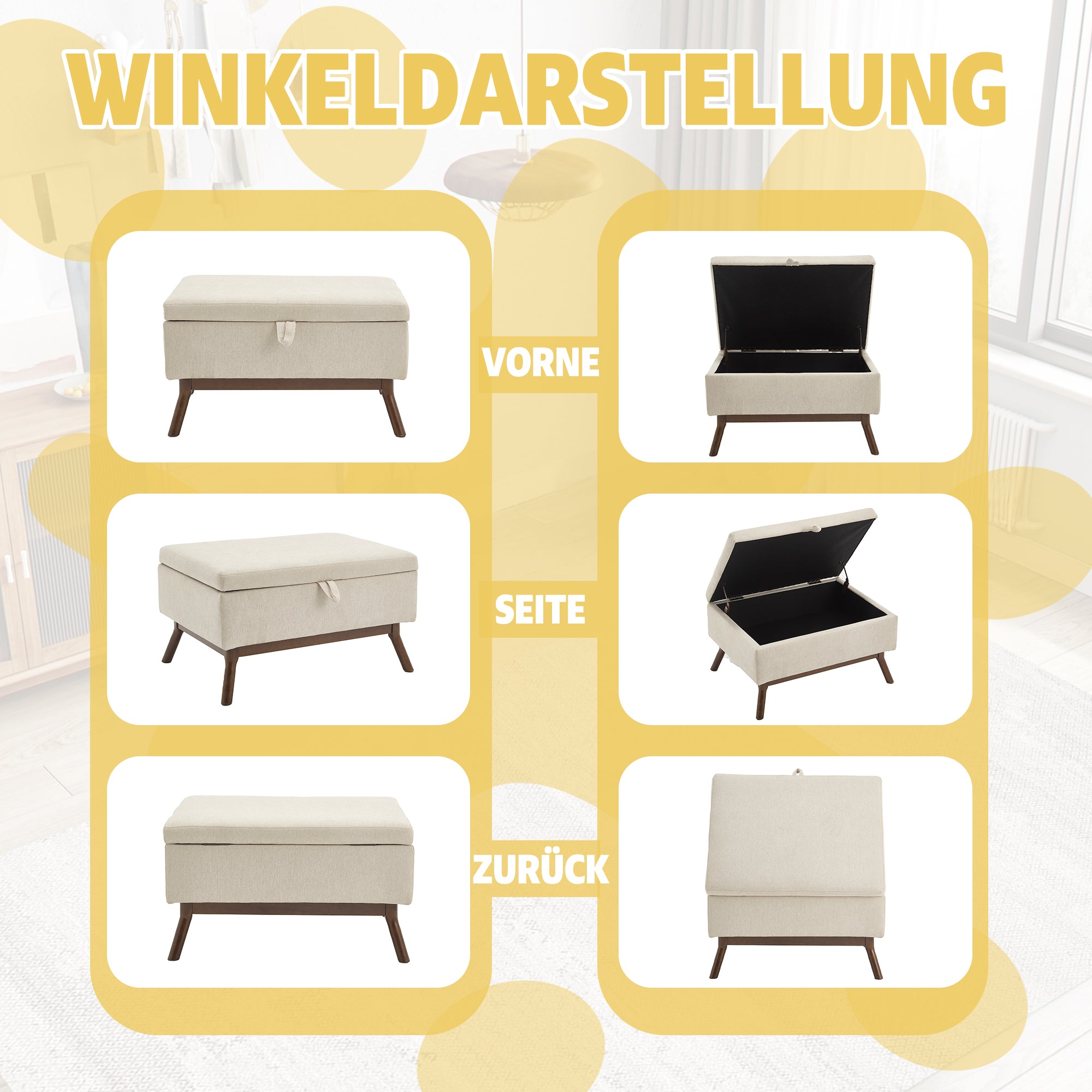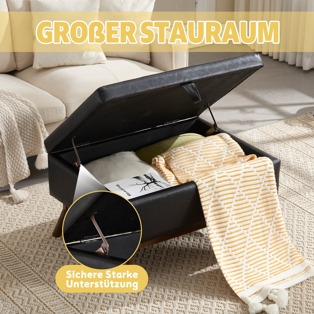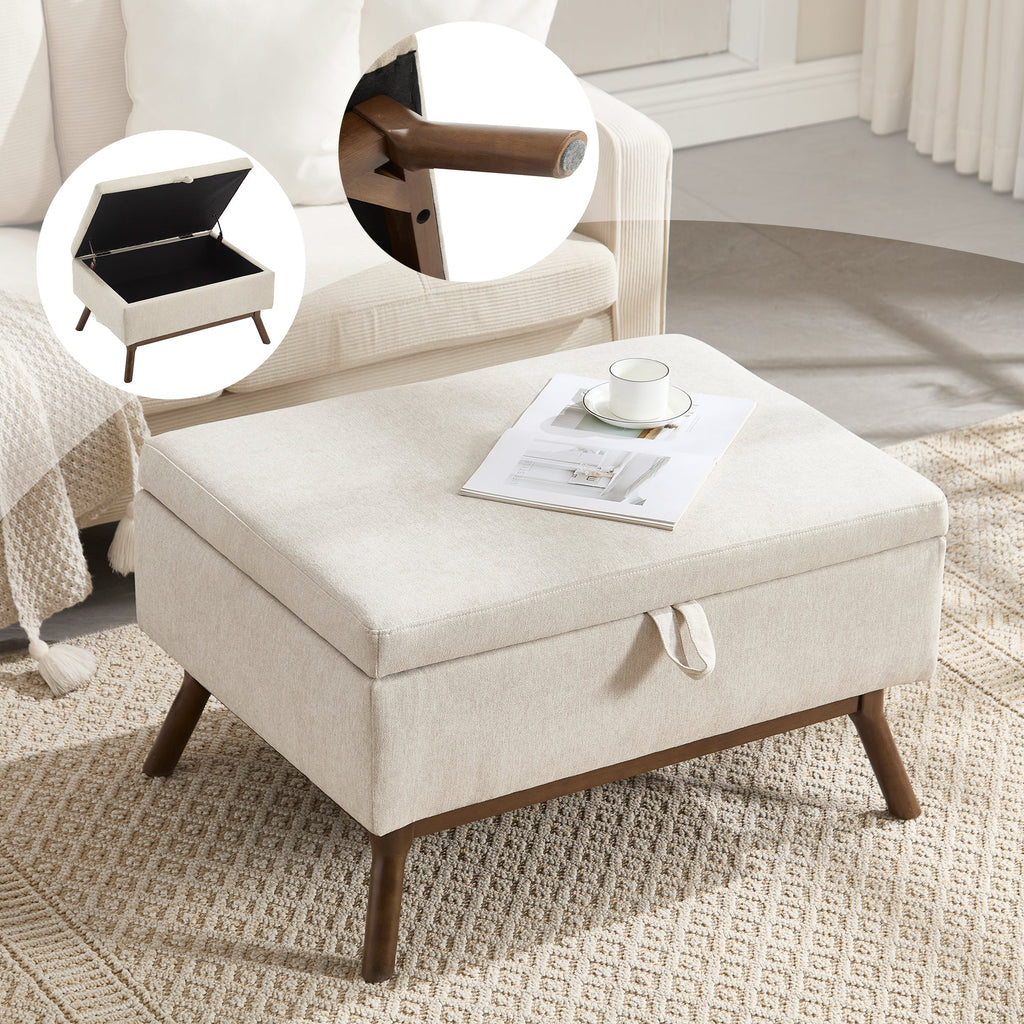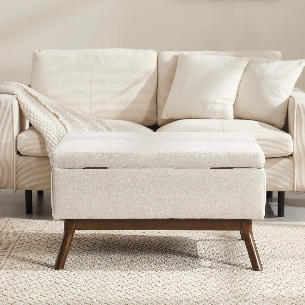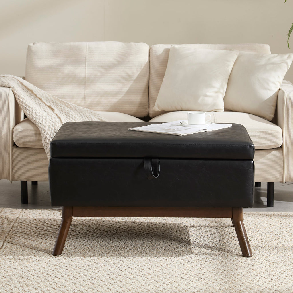 Mid-Century Modern Square Coffee Table Storage Bench, Assembled