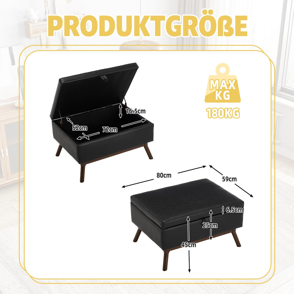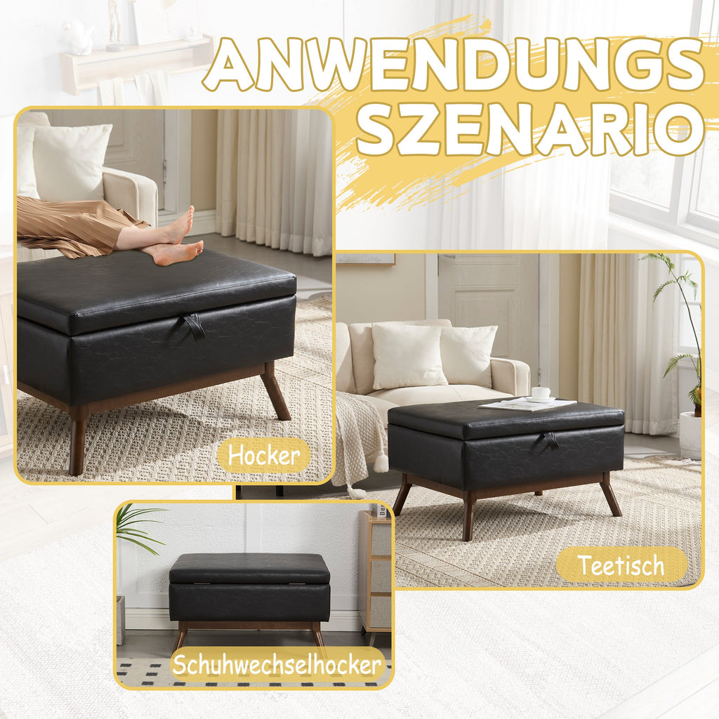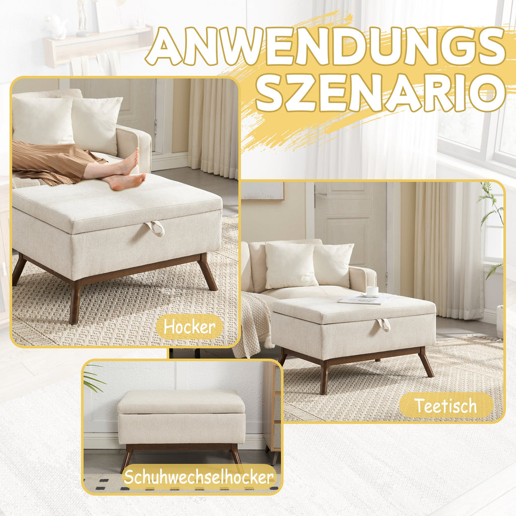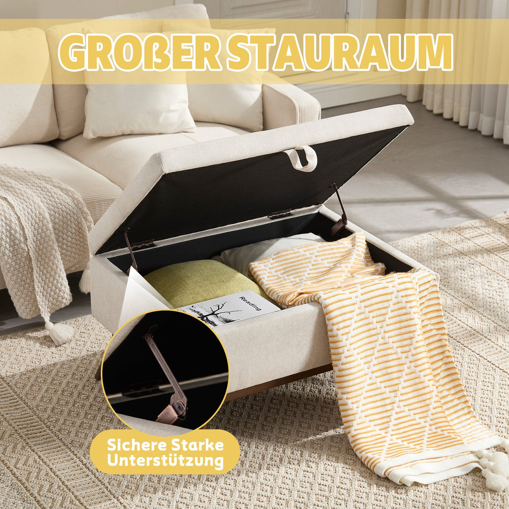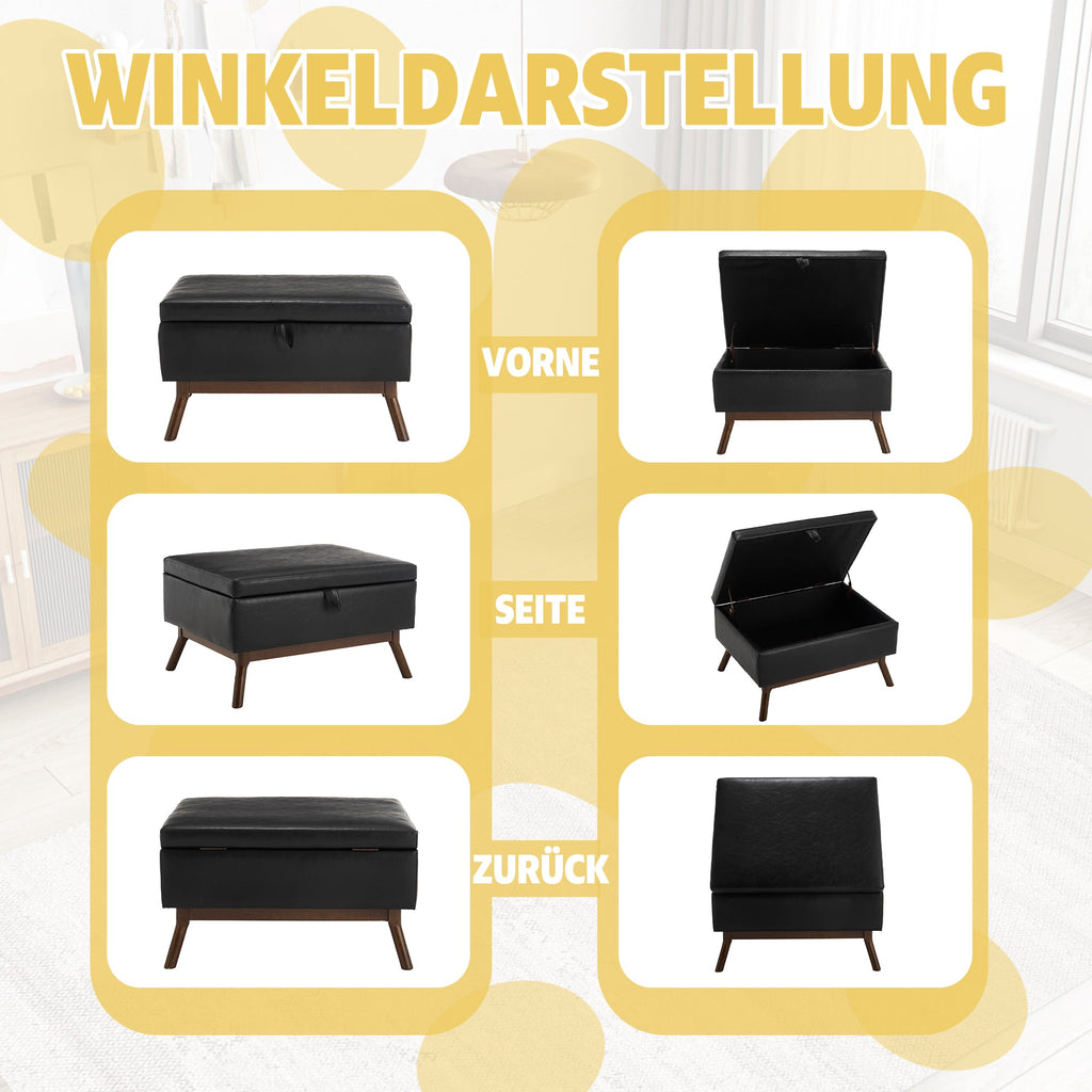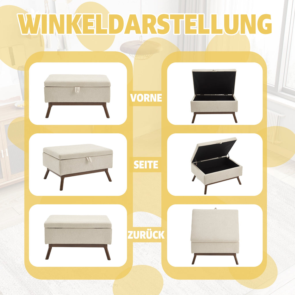 Mid-Century Modern Square Coffee Table Storage Bench, Assembled