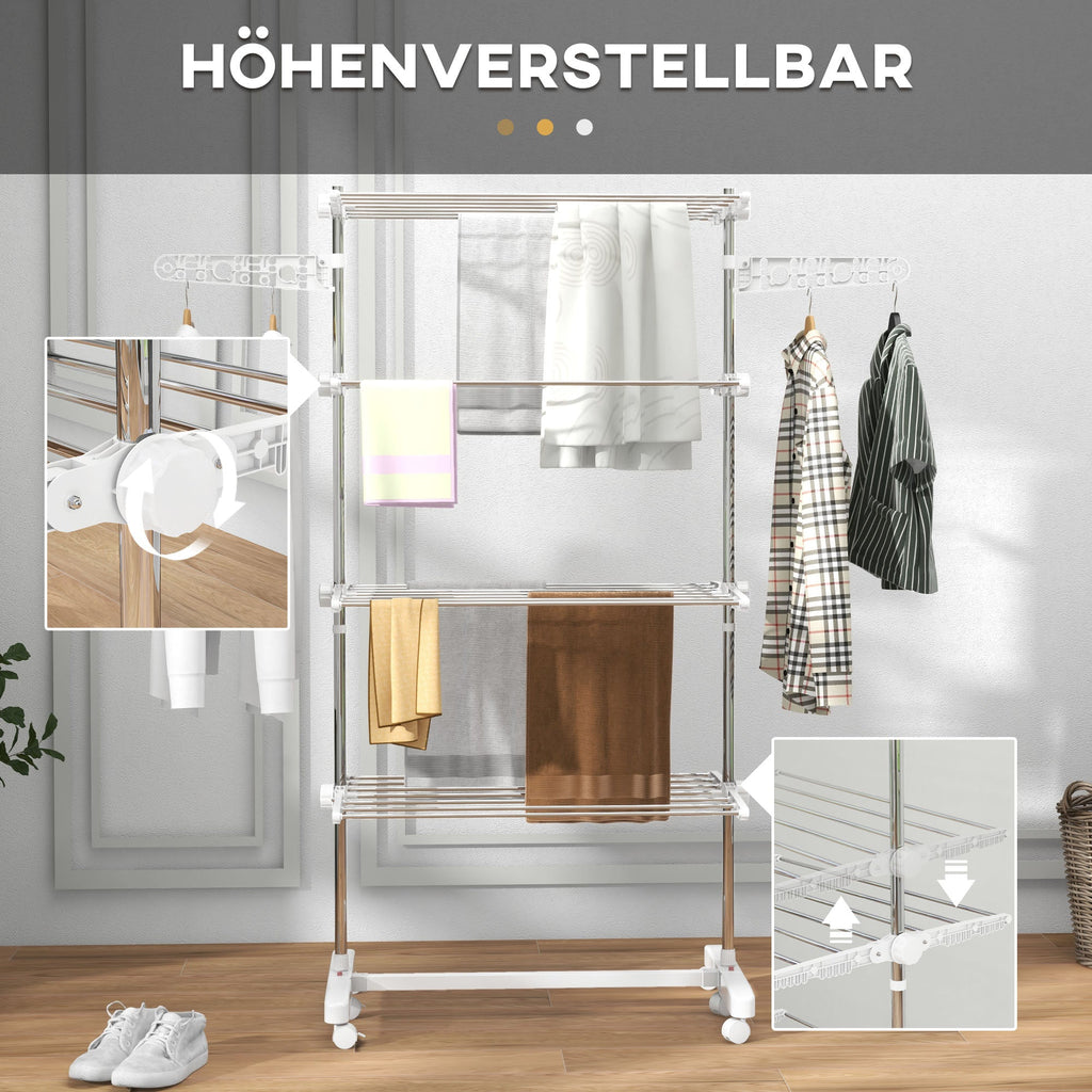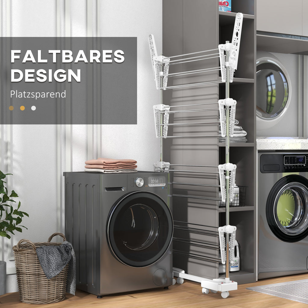 Mobile Clothes Airer, Foldable 4 Levels with Wheels, White ABS