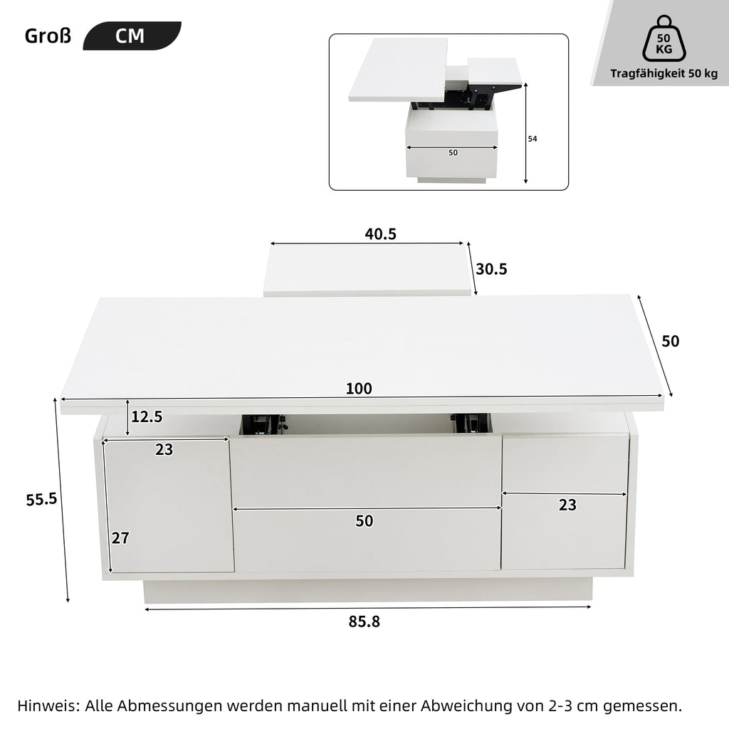 Modern Coffee Table with Double Lift-Top, Hidden Storage, 50kg Capacity