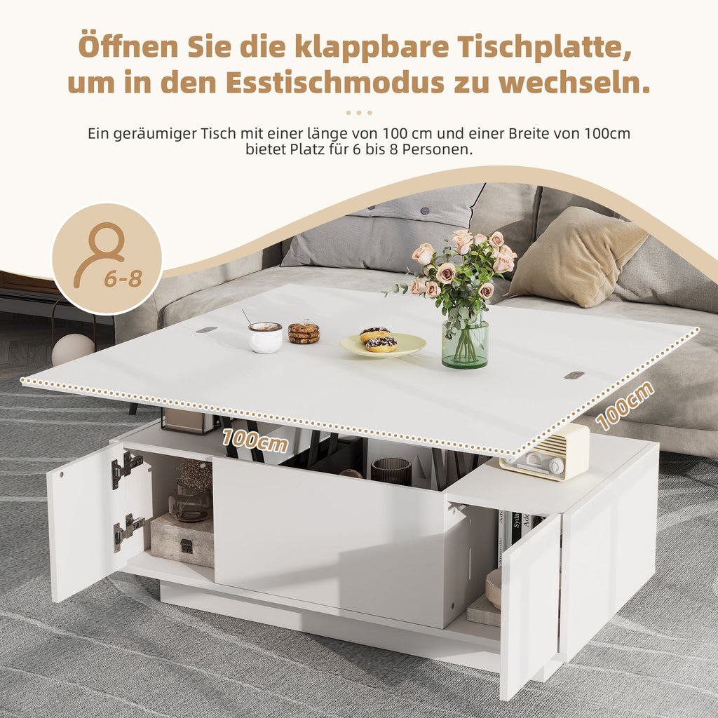 The coffee table features a practical double lifting mechanism, which includes a large and a smaller lifting plate. Both plates allow for easy height adjustment, enabling you to work, eat, or relax comfortably without ever having to change your seating position.