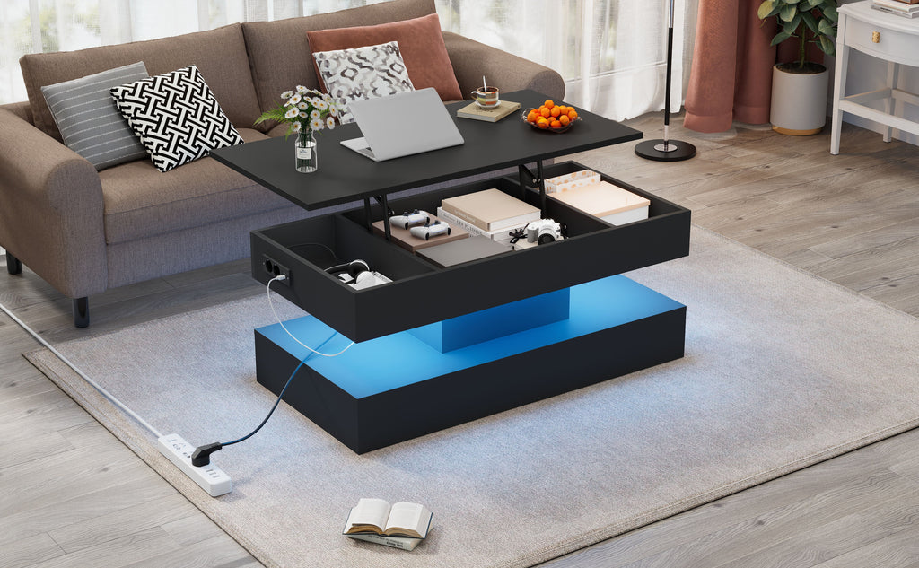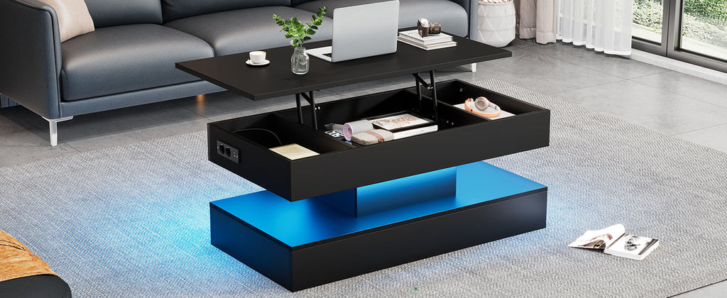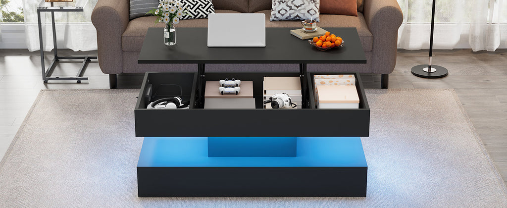 Modern Coffee Table with LED Lighting, Hidden Storage & Hydraulic Lift