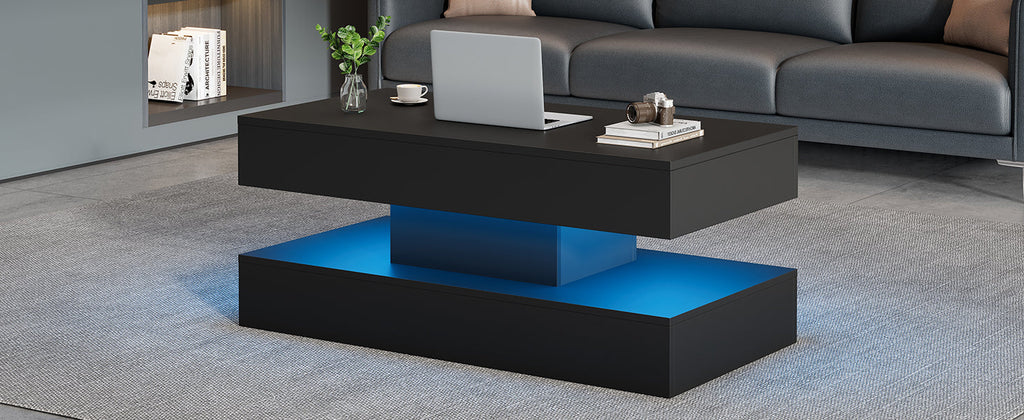 Its simple, clean design in high-quality black blends perfectly into any decor, making it the focal point of your living space. Energy-saving LED technology also ensures lower energy consumption, making the coffee table an environmentally friendly choice for your home. Maximize the functionality of your living space with this beautiful and practical piece of furniture. Designed to meet the flexible needs of modern living, this coffee table is a great addition to any home.