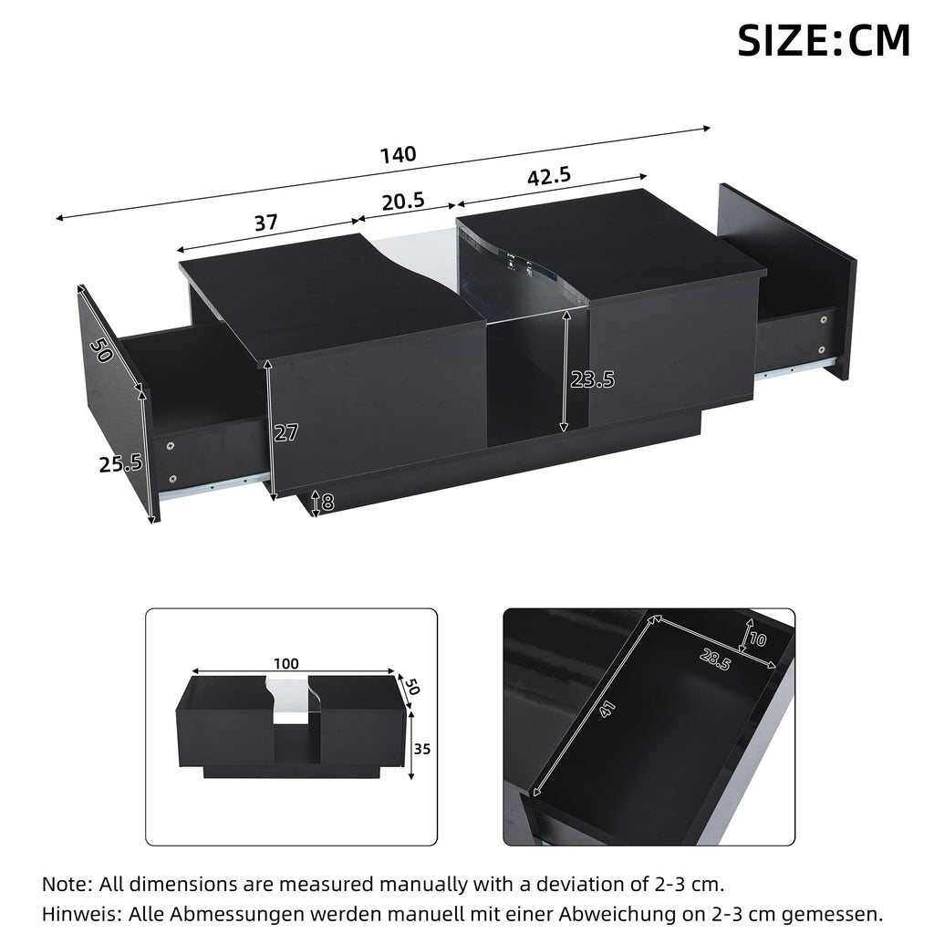 Modern LED Coffee Table, 2 Drawers with LED Light & Acrylic Top, Black High-Gloss MDF