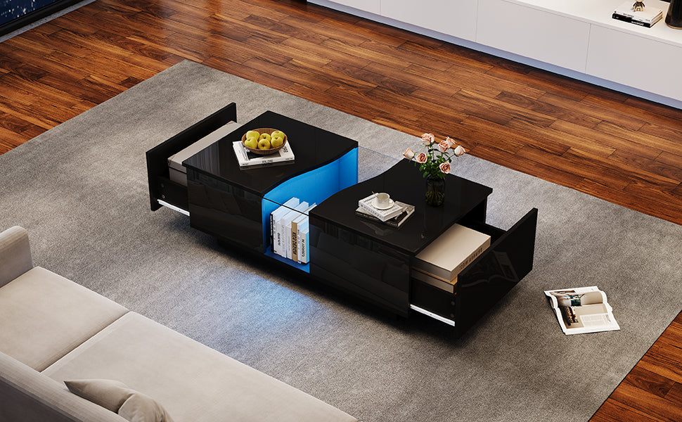 Modern LED Coffee Table with 2 Drawers