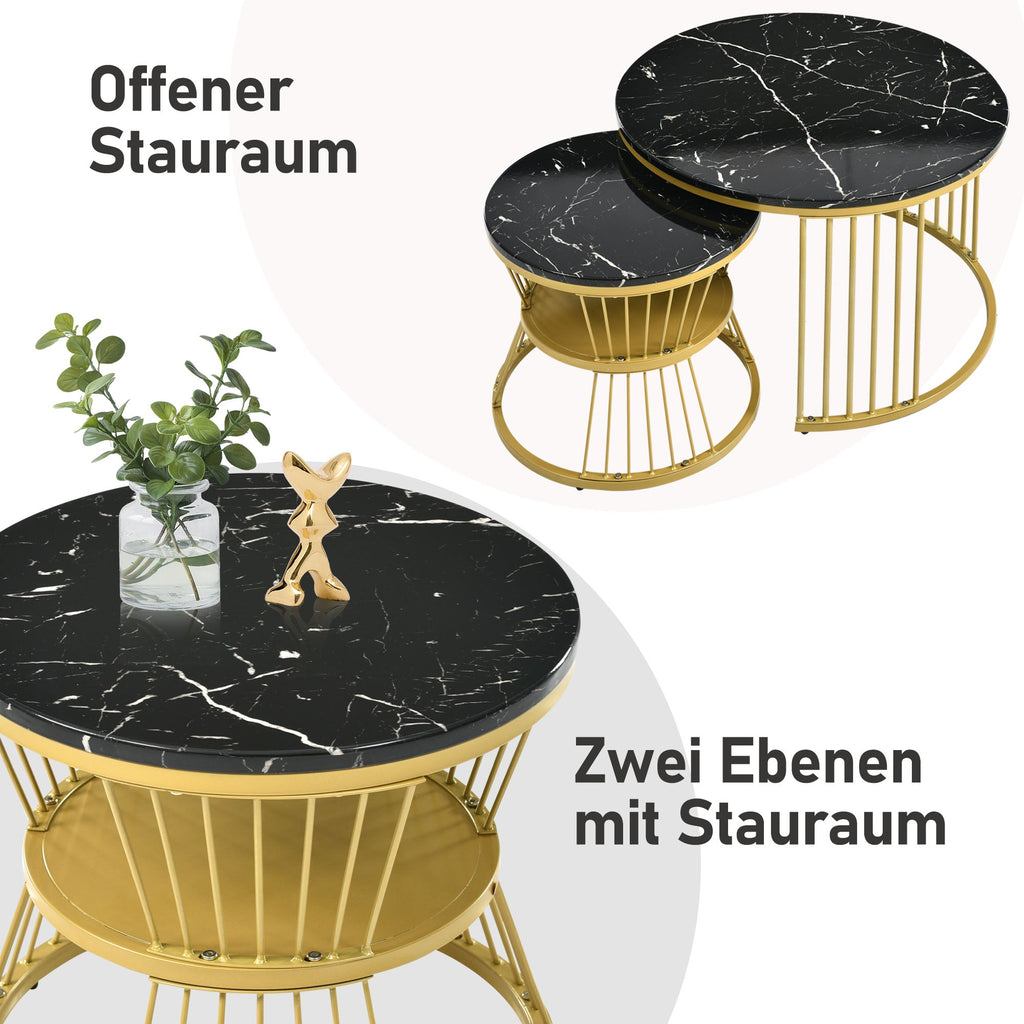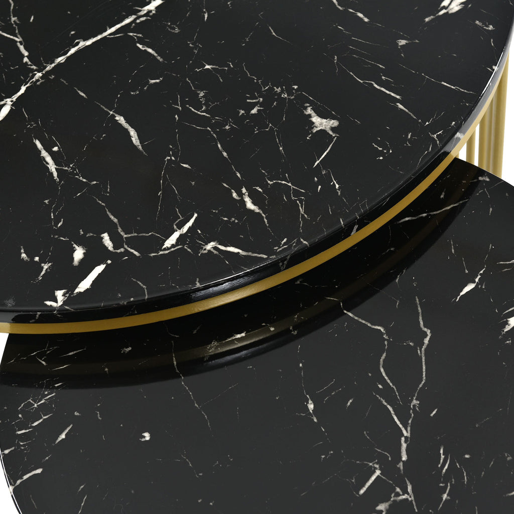 Modern Nesting Coffee Table Set, Marble Veneer Round End Tables, Golden Color Frame