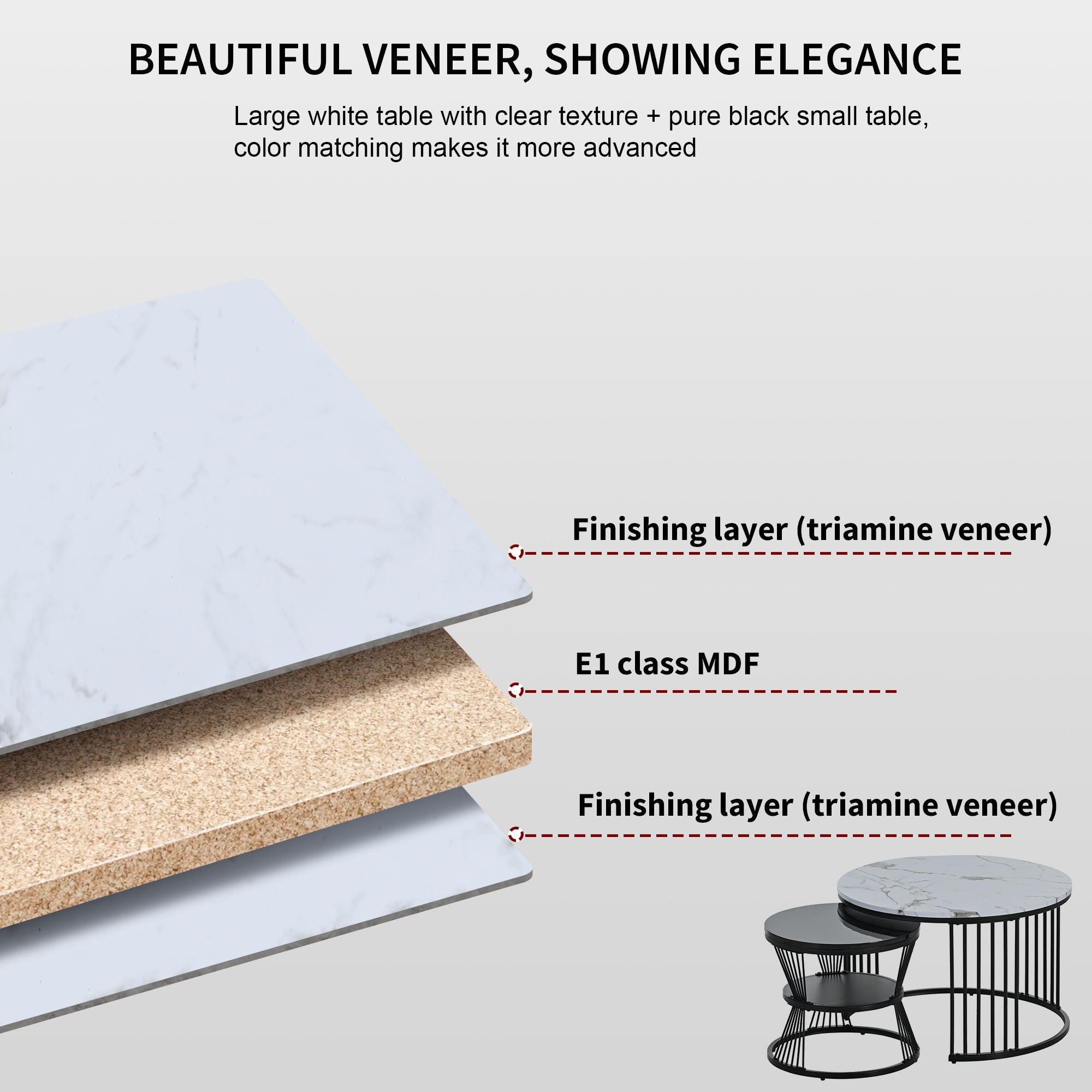 Please note: The tables are MDF with a marble pattern veneer, not made of marble or slate.