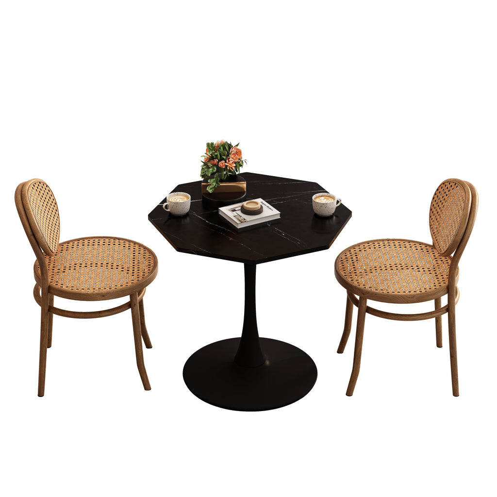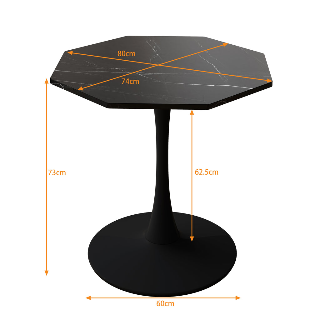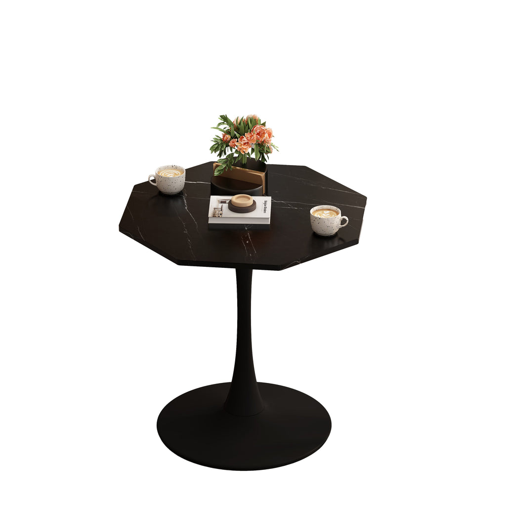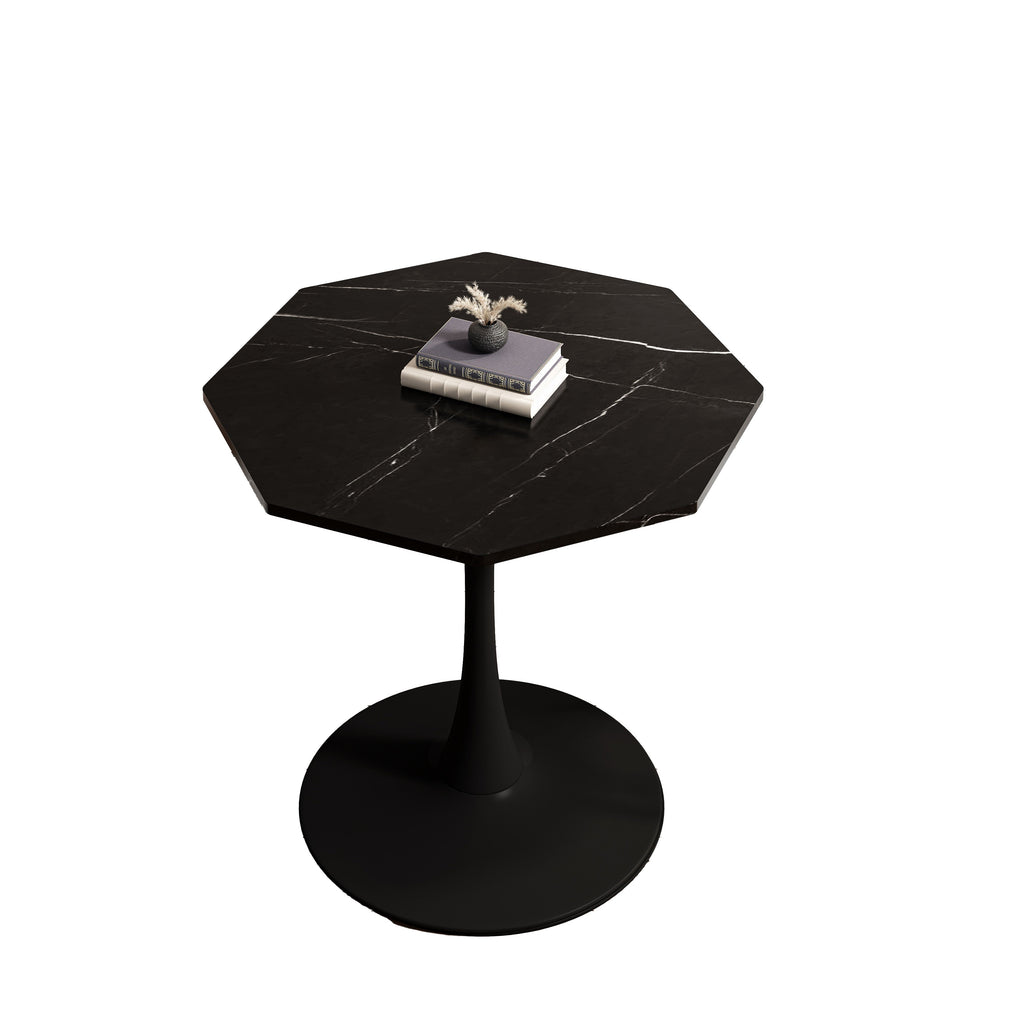 Modern Octagonal Coffee Table, 31.50" with Printed Black Marble Table Top, Metal Base