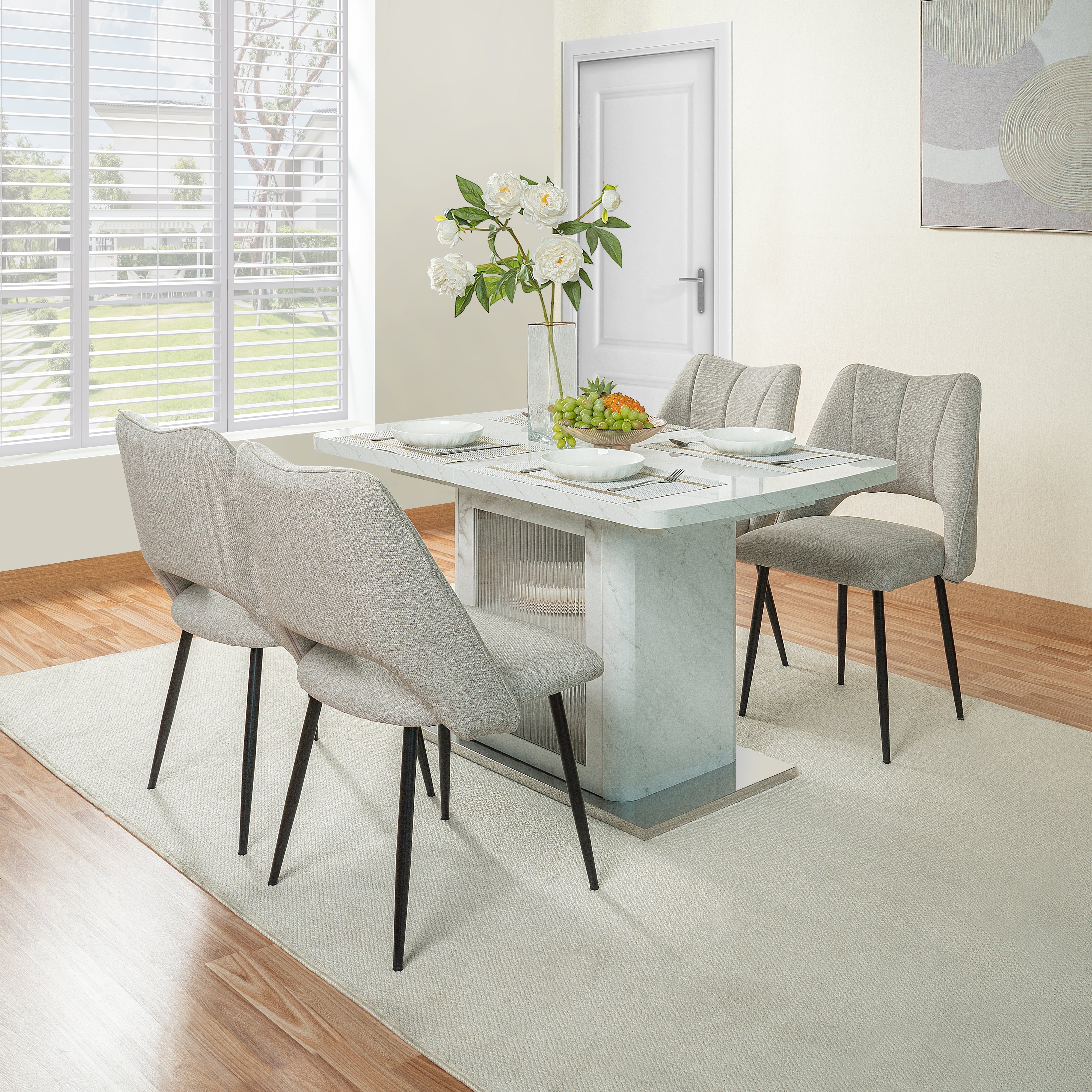 Color: White (printed white marble table top)