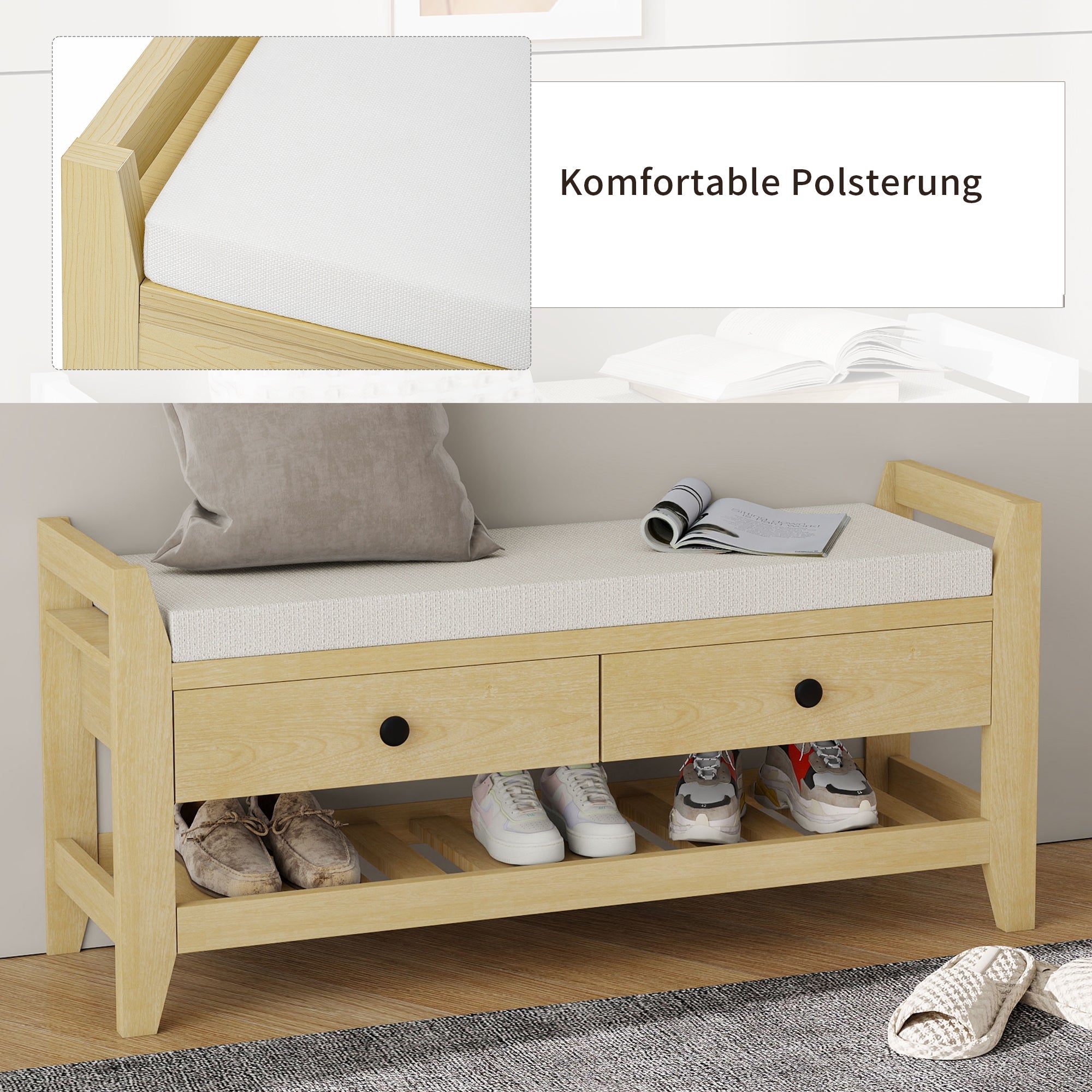 Modern Shoe Bench with Seat & Storage, Cushion, Natural