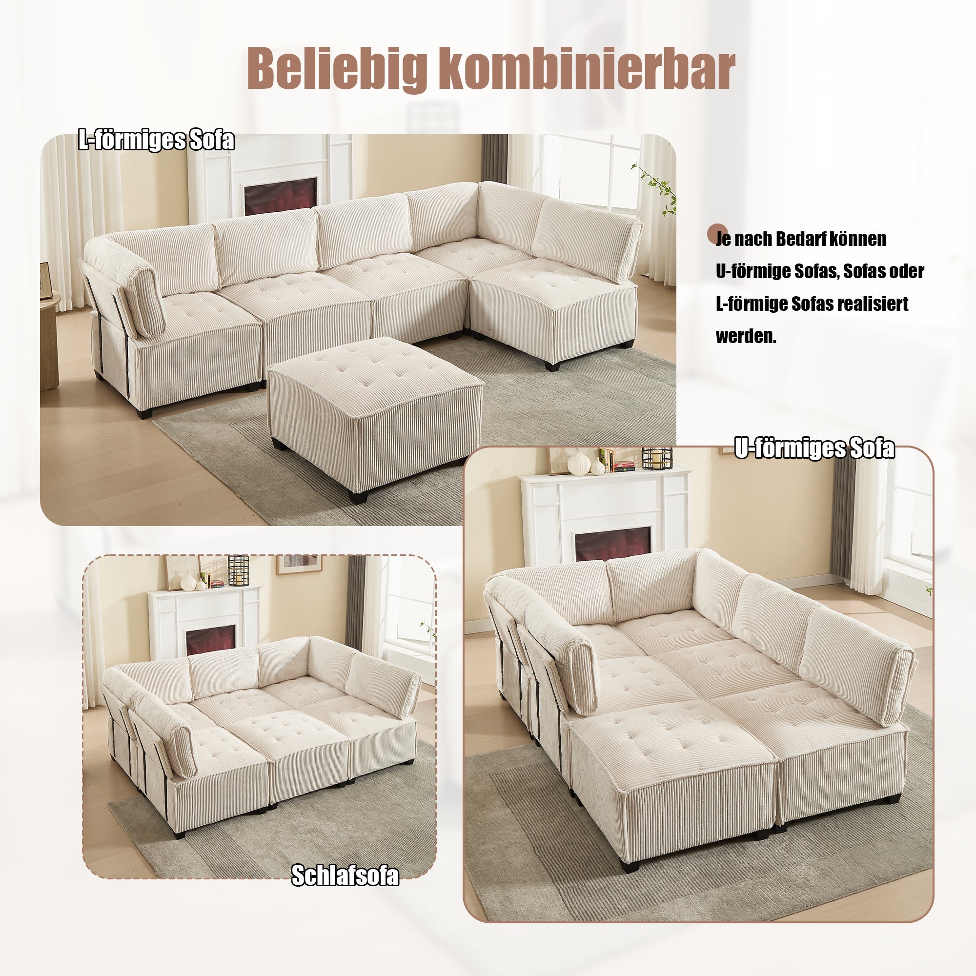 Build your dream sofa yourself! The 6 modules can be freely combined into a U-shape, L-shape, or even converted into a bed – perfect for moving or a temporary makeover. All parts fit perfectly!