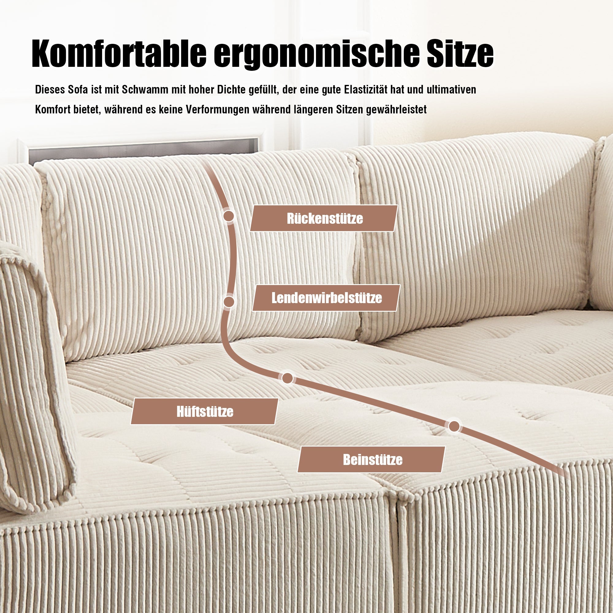 Our oversized sofas offer plenty of room for the whole family! The durable corduroy upholstery is breathable, skin-friendly, and easy to care for. High-quality fabrics with elastic foam padding instantly return to their original shape every time you get up, ensuring no dents remain. Perfect for a cozy movie night!