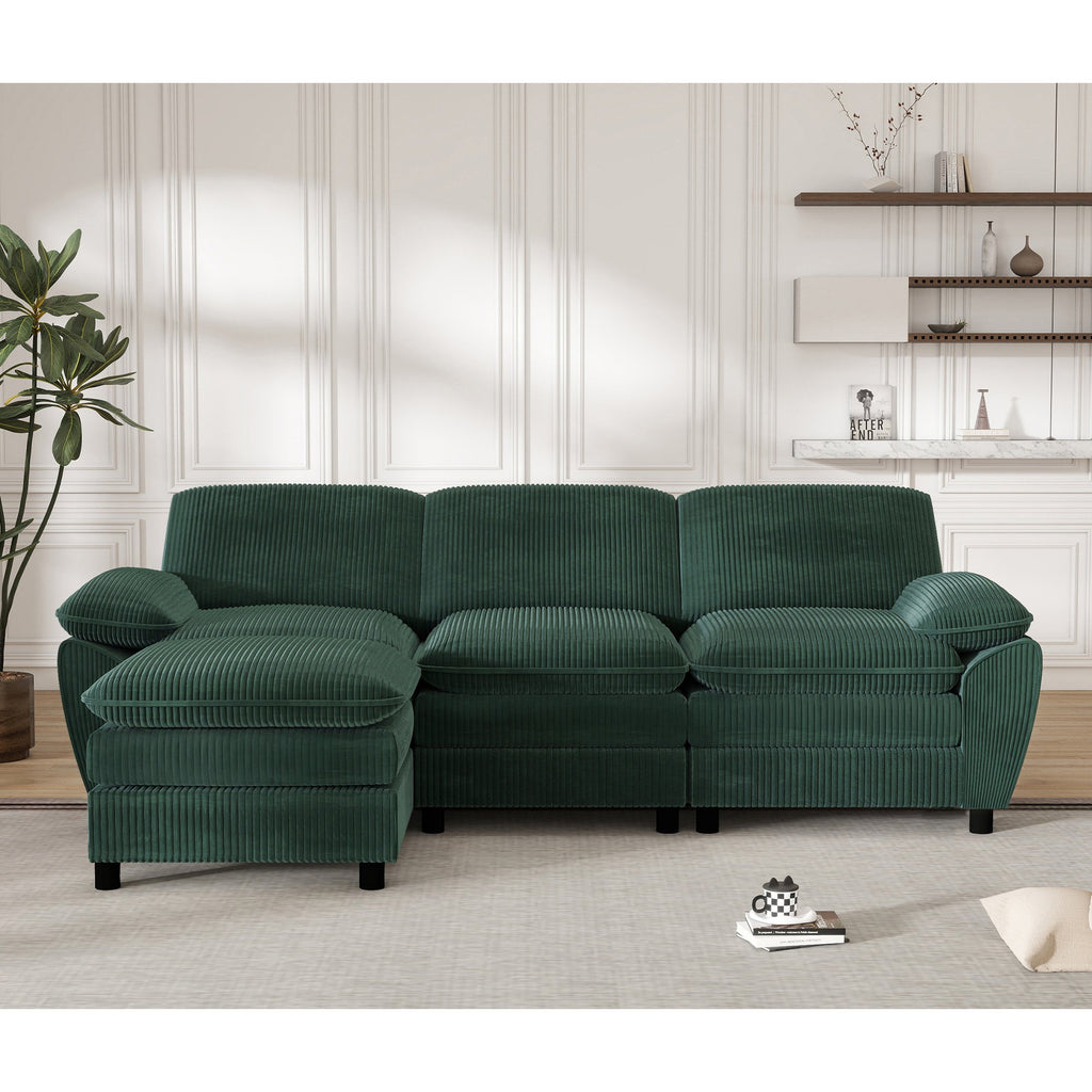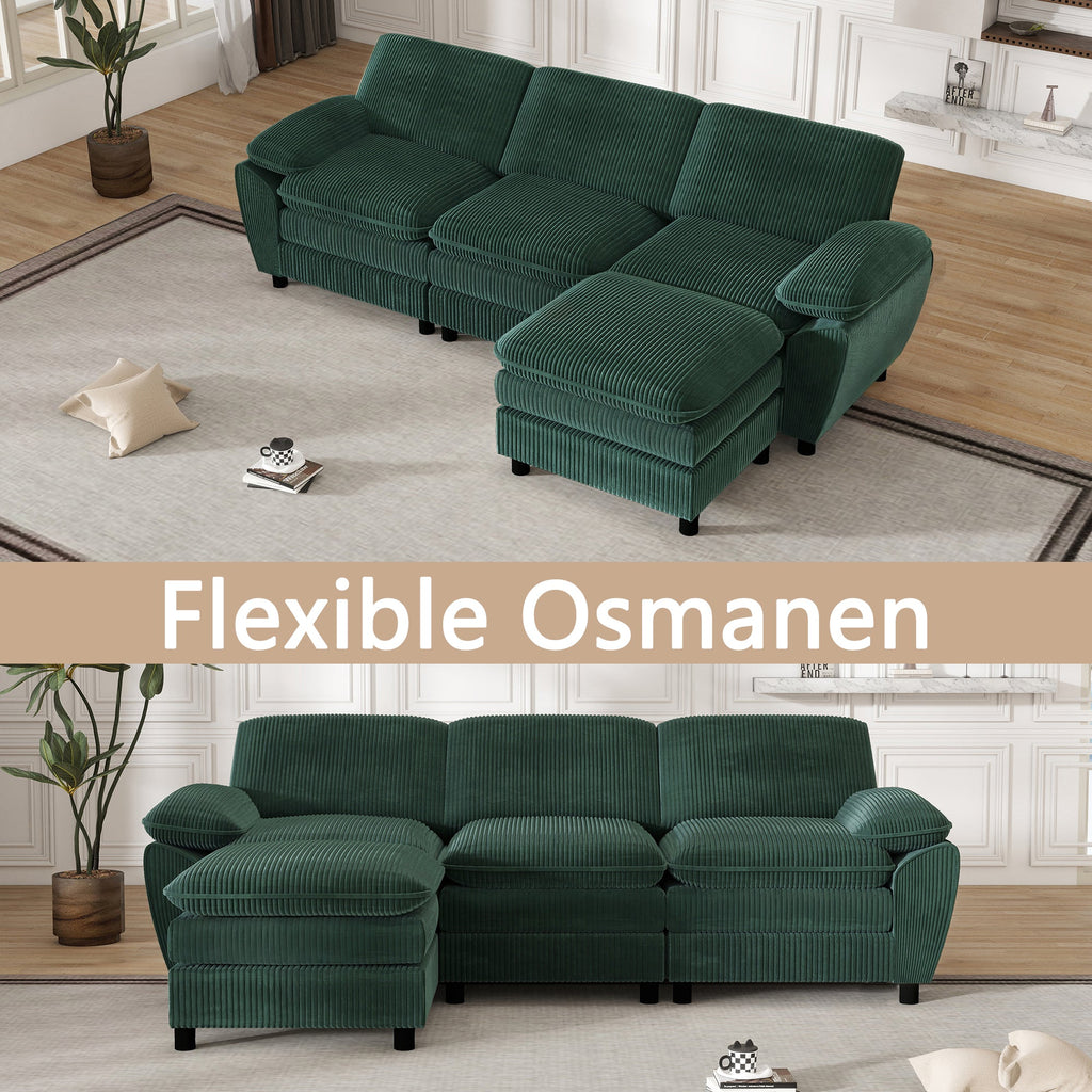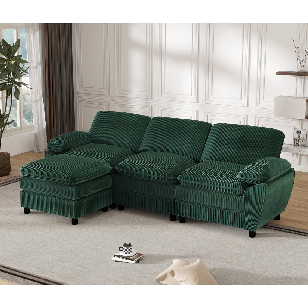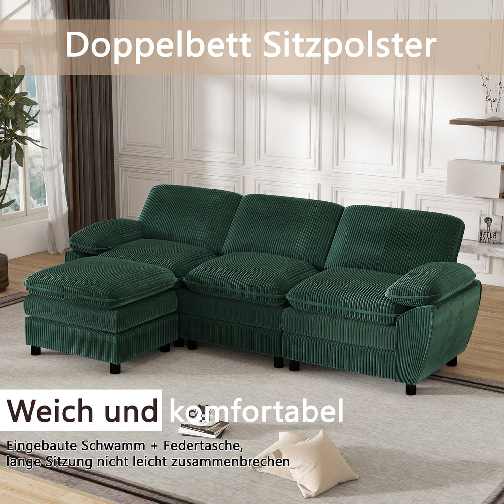 Modular Combo Sofa, Double Cushion Velvet Sofa Bed with Ottoman, Living Room