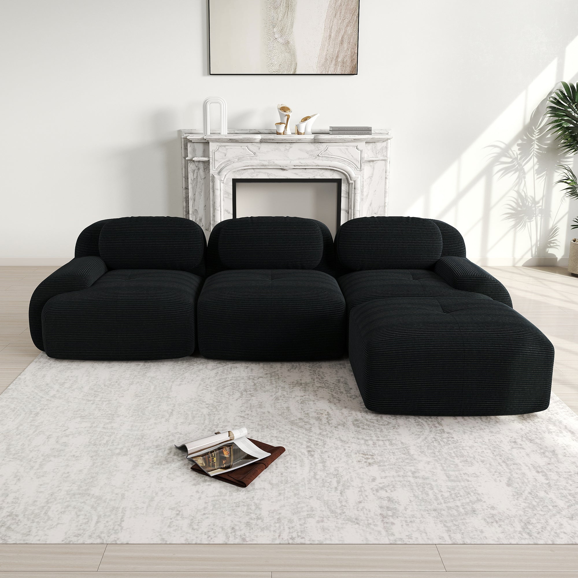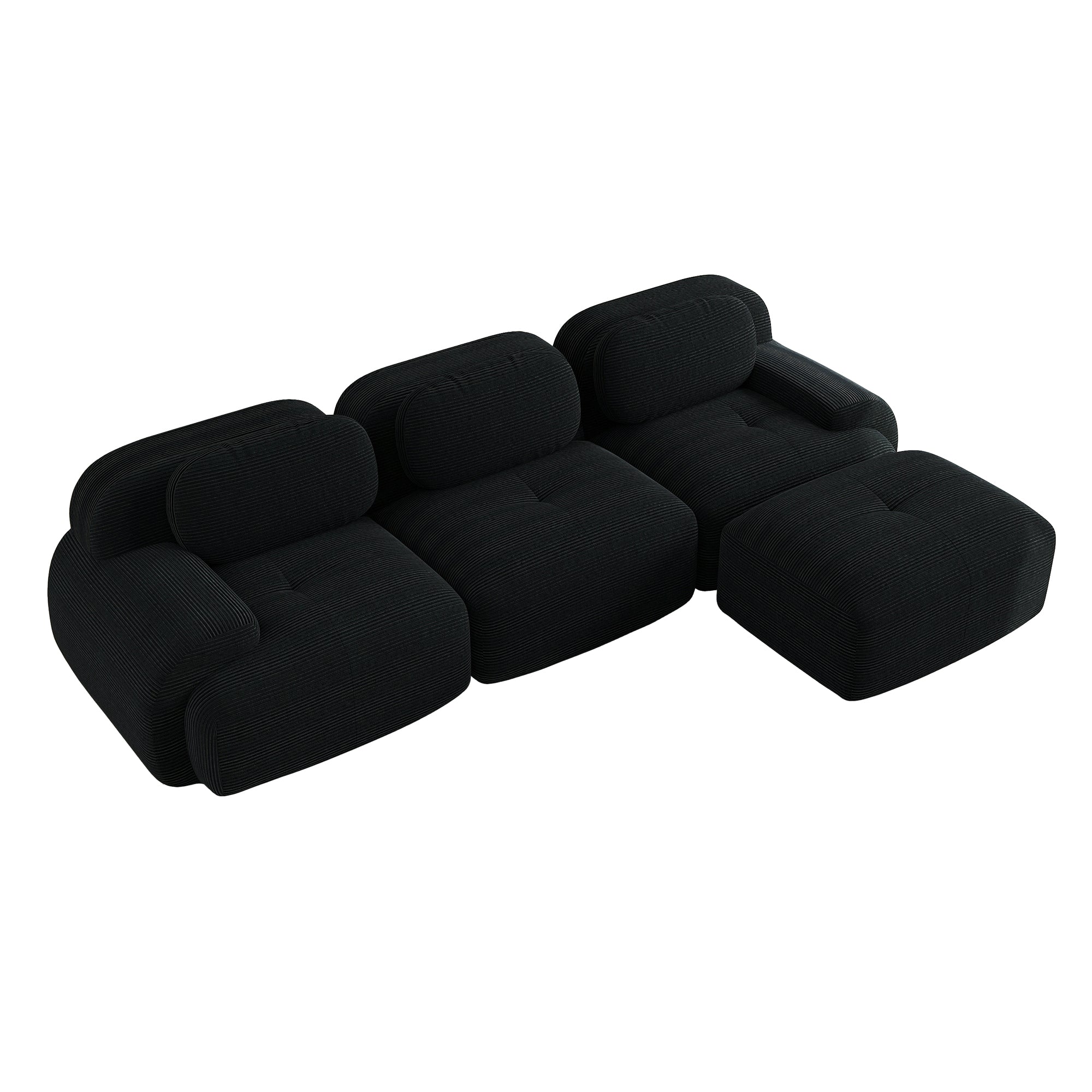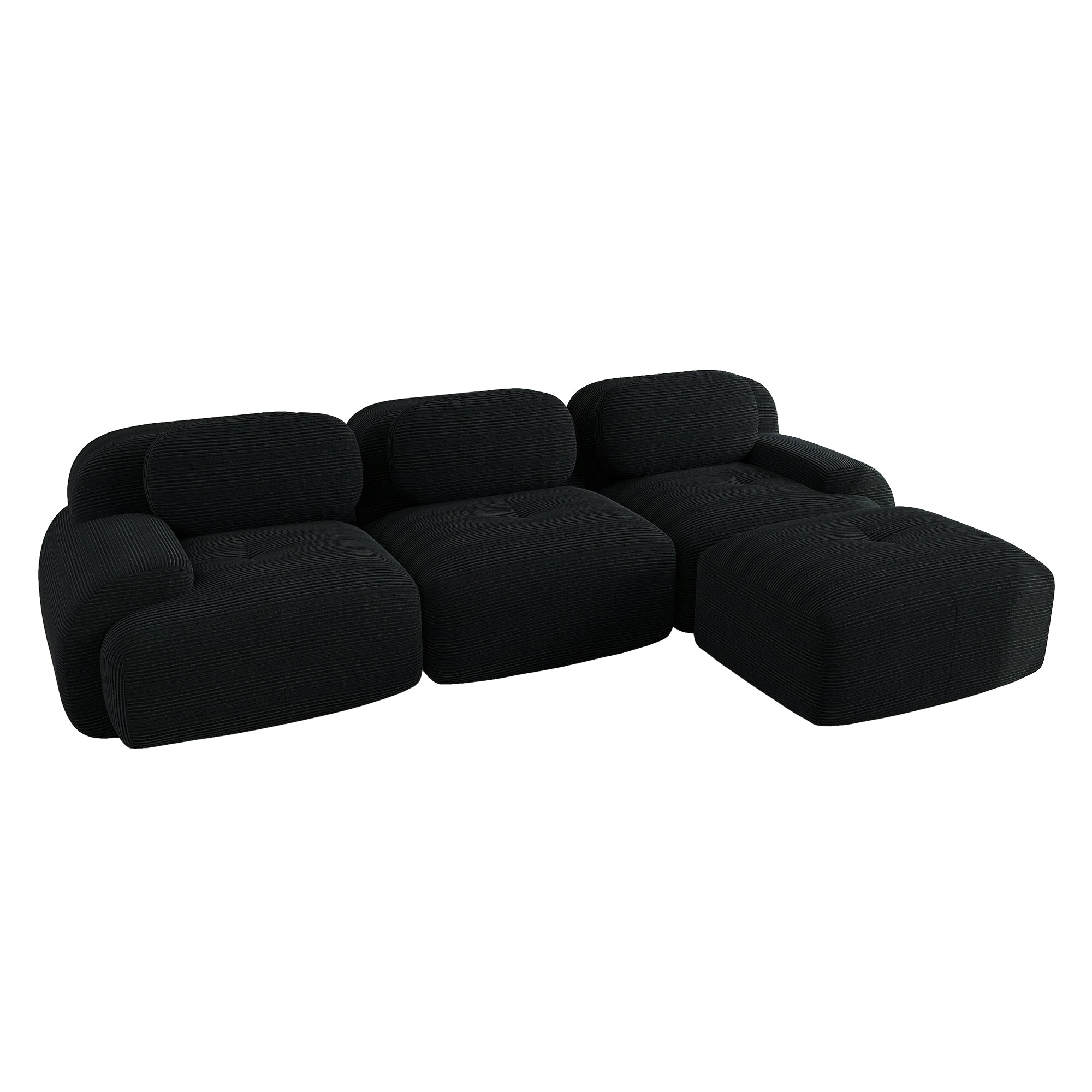 Modular Corner Sofa, Ergonomic Pet-Friendly Corduroy with Wide Armrests, Black