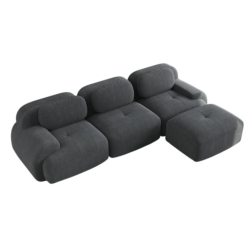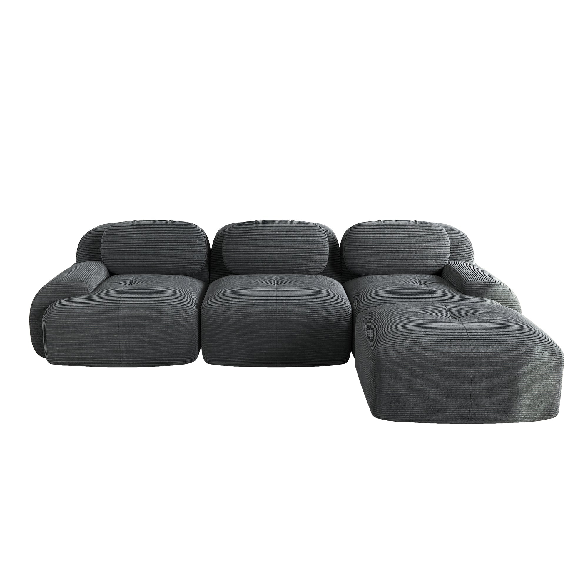 Modular Corner Sofa, Ergonomic Pet-Friendly with Wide Armrests, Corduroy Grey