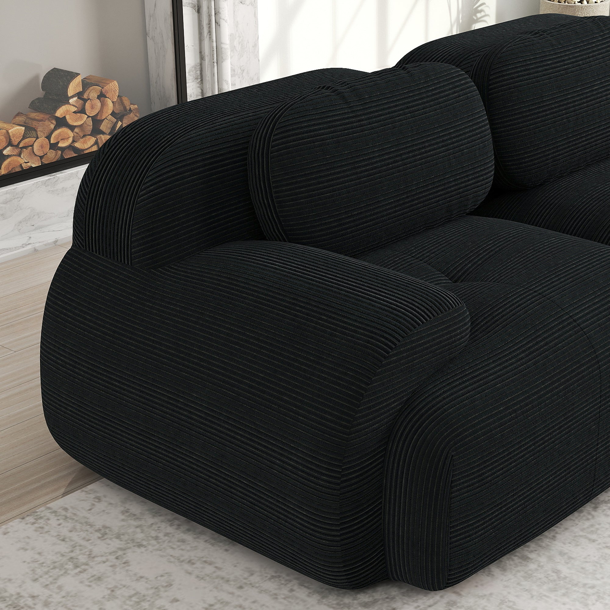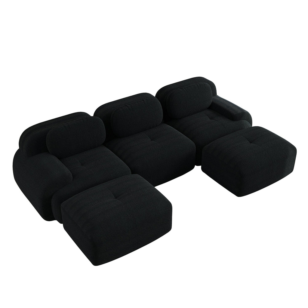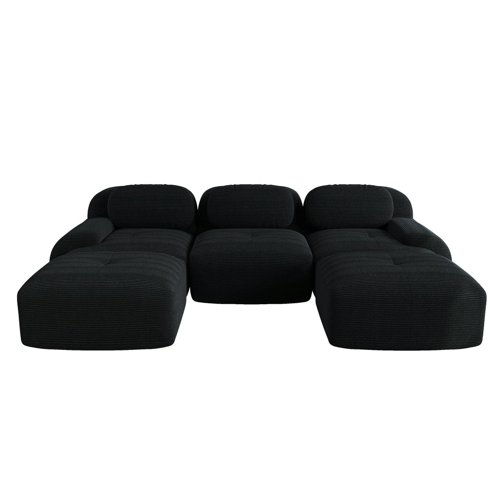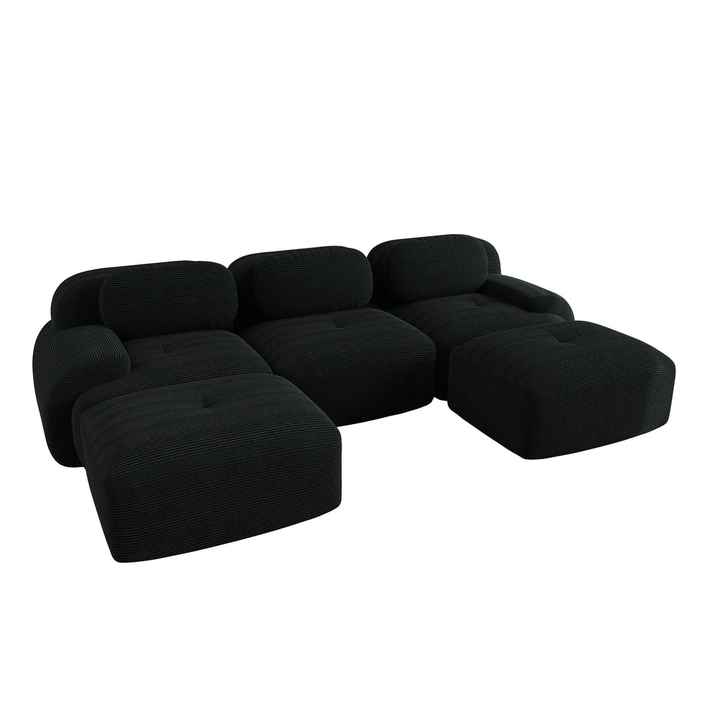 Modular U-shaped Sofa, Assembly-Free, Pet-Friendly, Extra-Wide Armrests, Black Corduroy