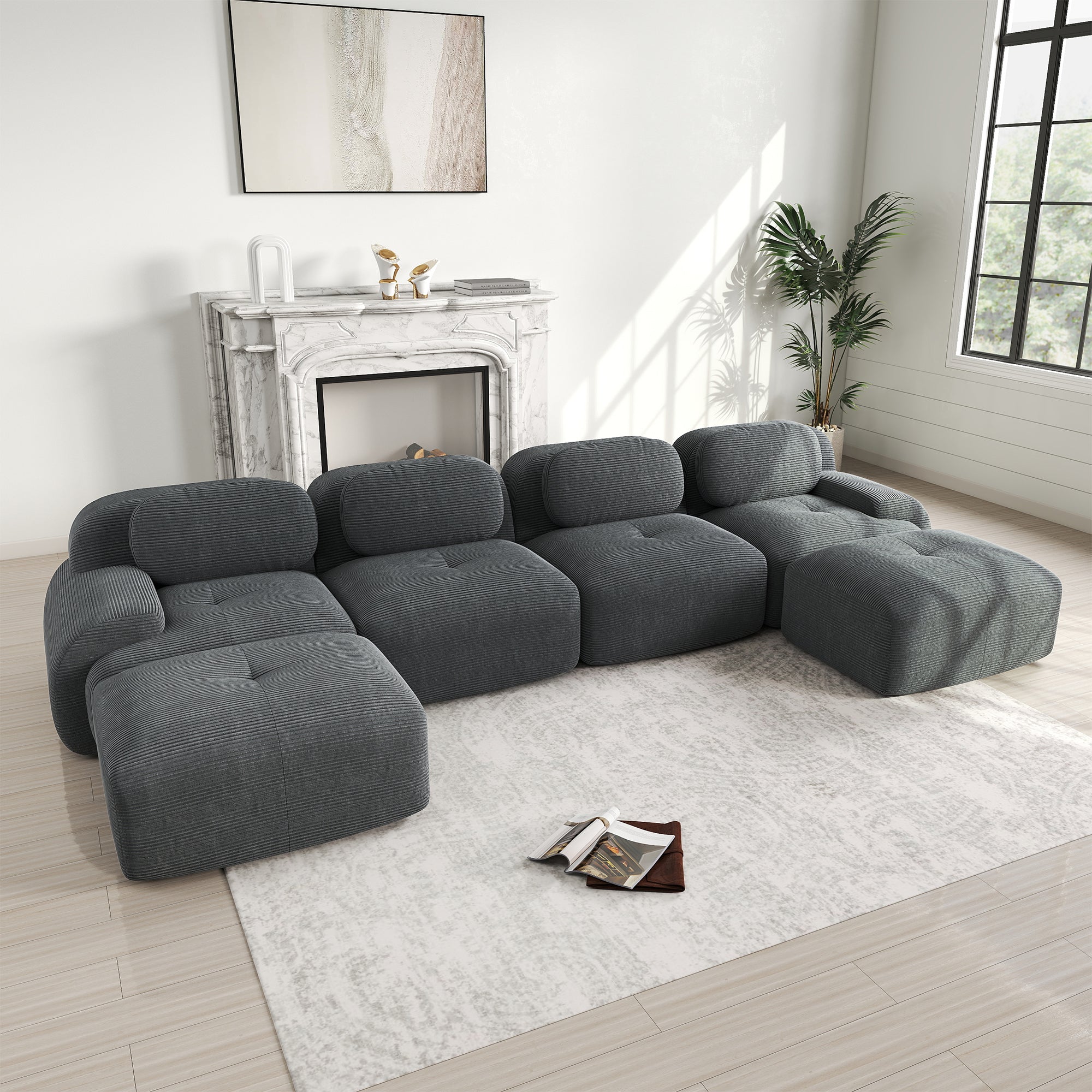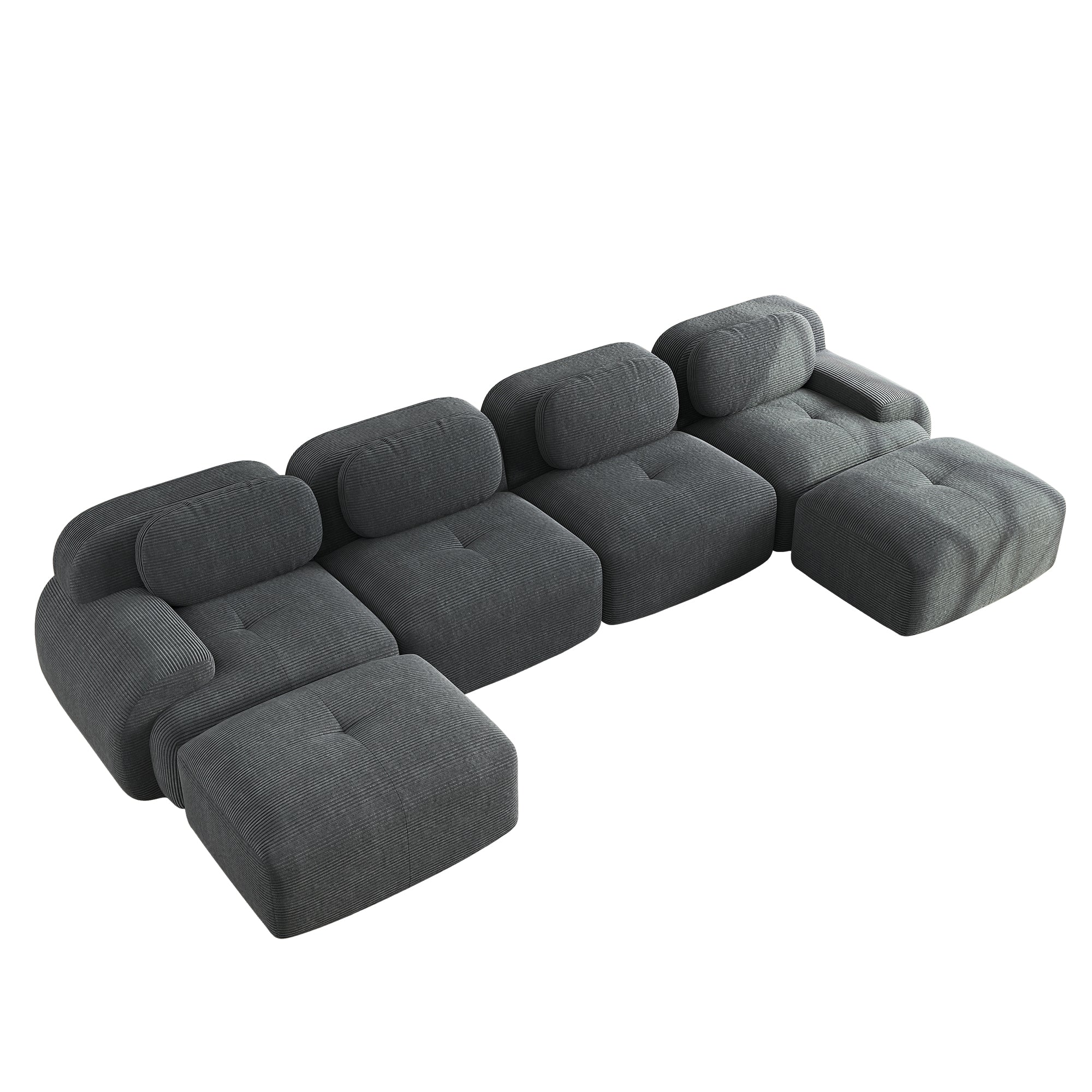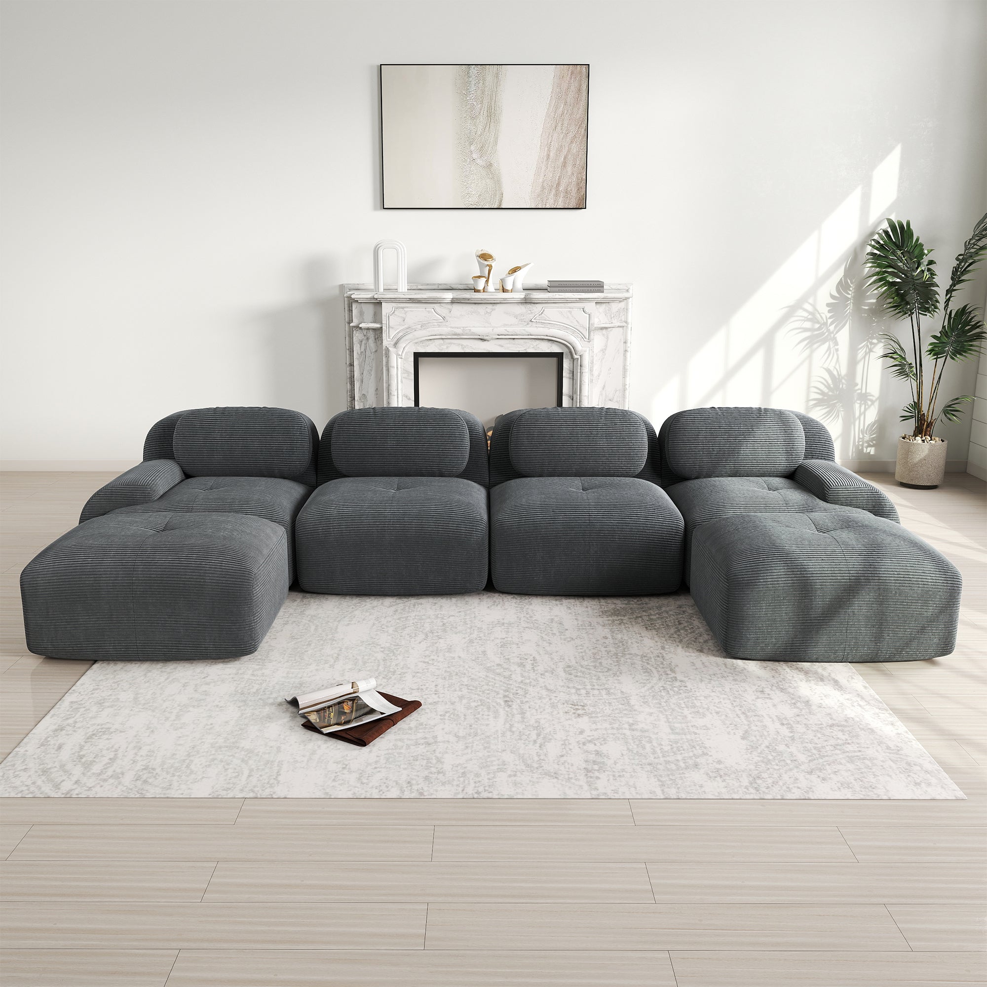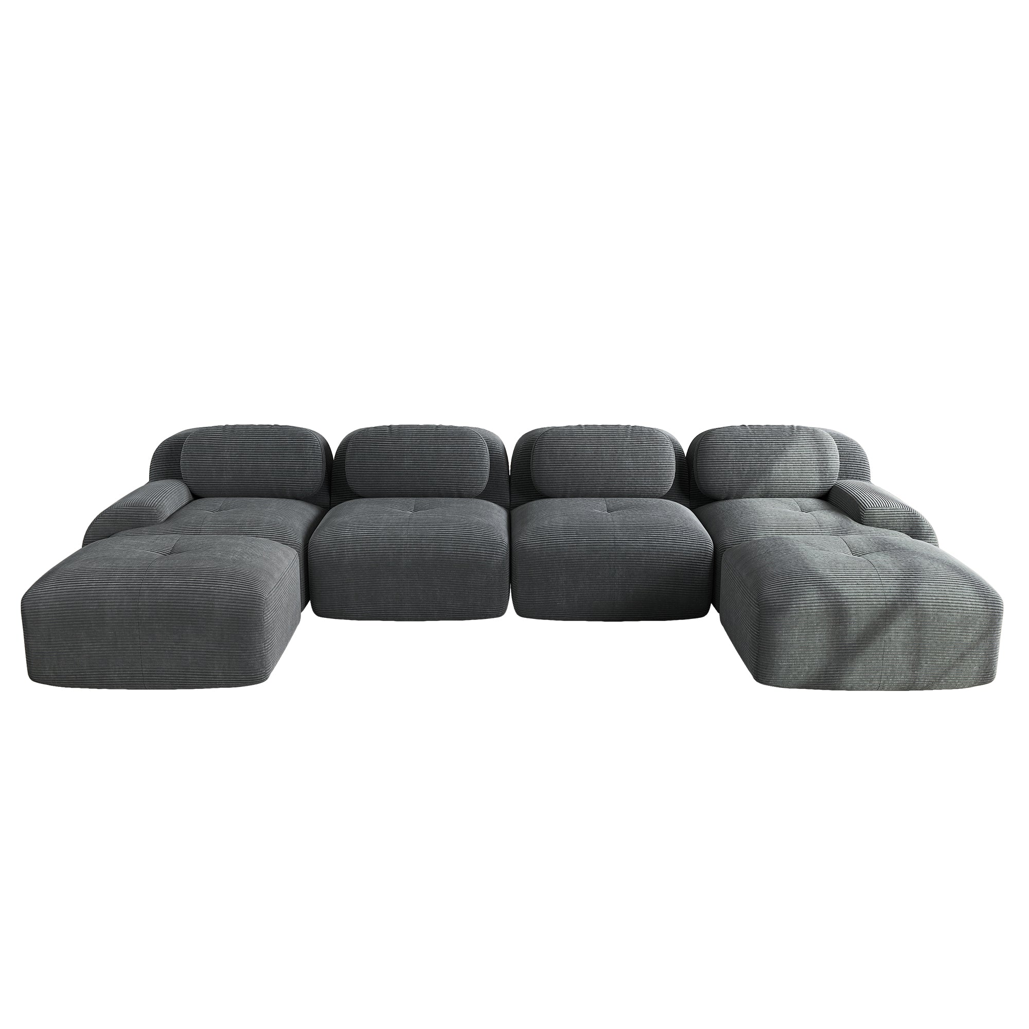 Modular U-shaped Sofa, Pet-Friendly, Ergonomic, Corduroy Grey