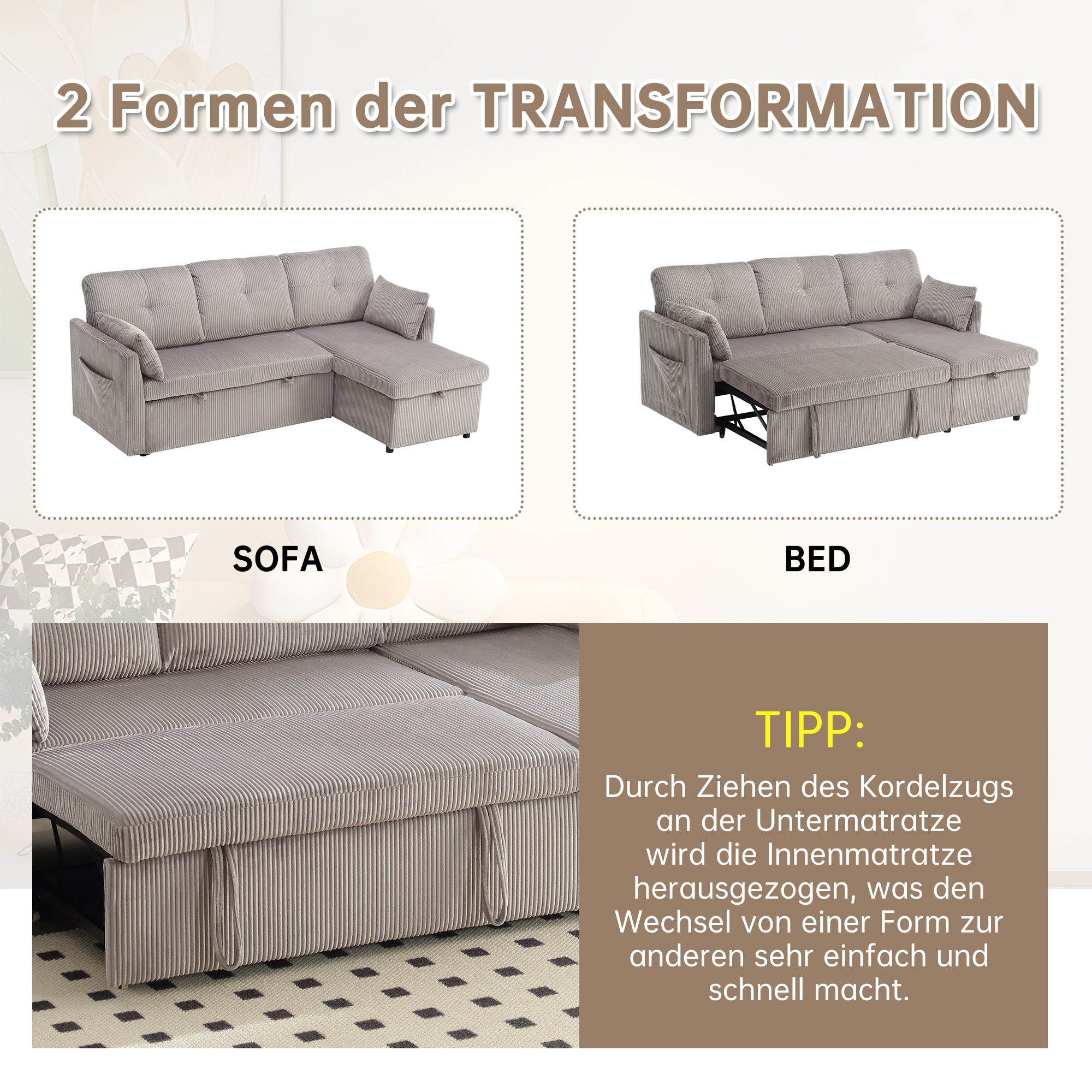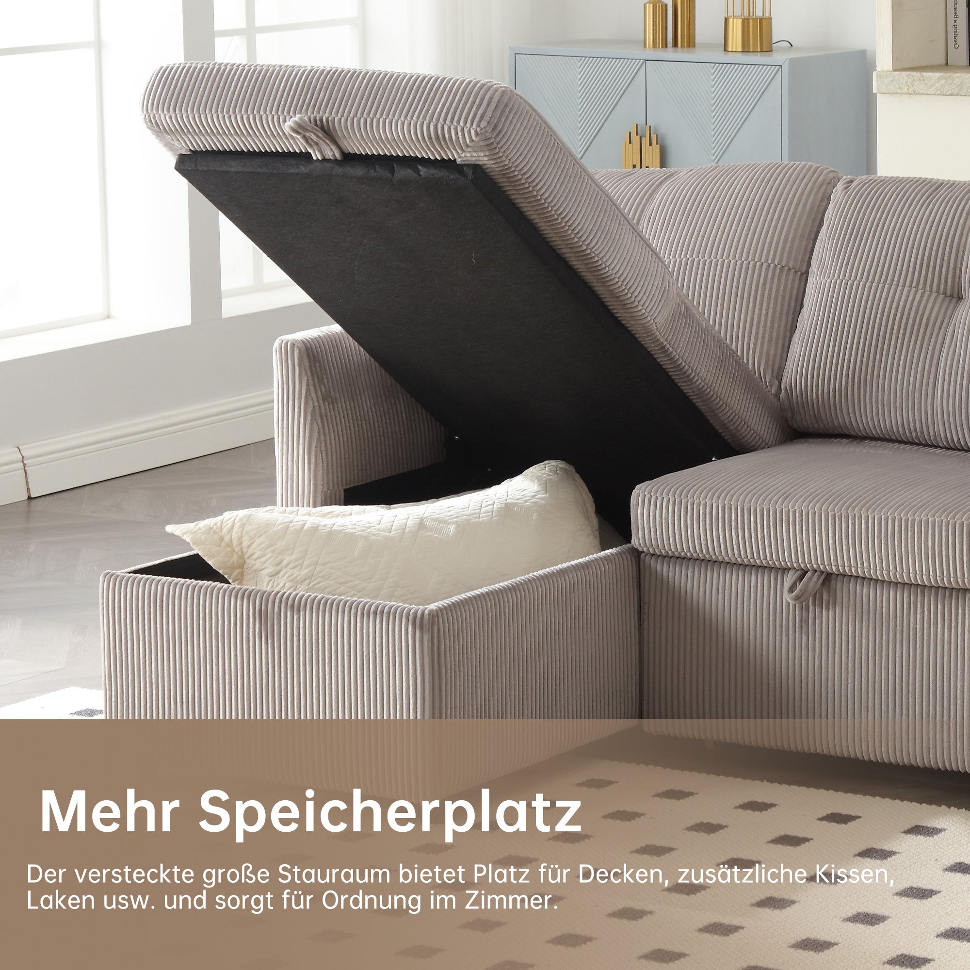 Multi-functional Sofa Bed, Modular L-Shaped Sectional with Storage and Pull-out Bed