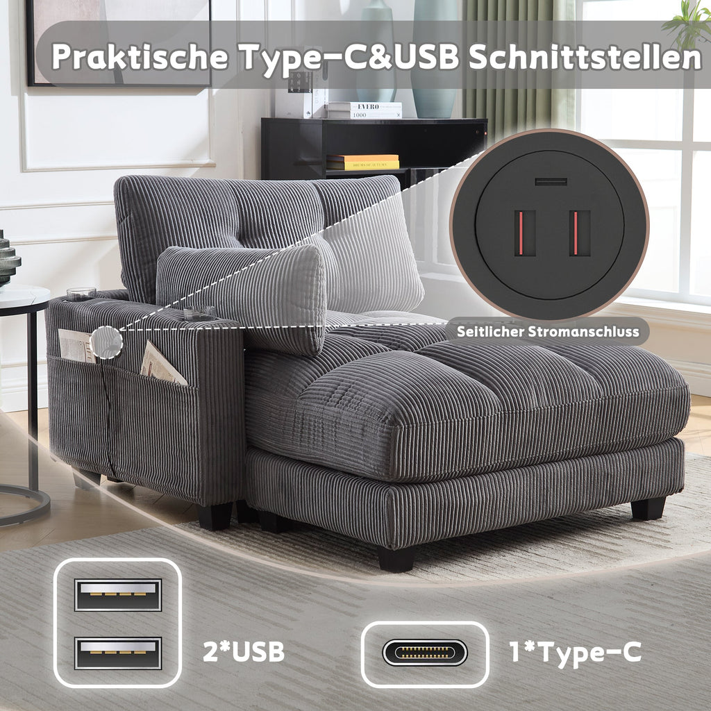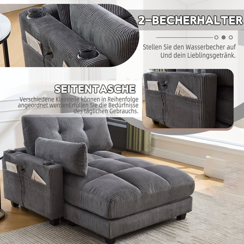 With its modern, minimalist design, this recliner enhances your living space with interchangeable left and right armrests, matching cushions, and a stylish aesthetic that complements various room settings.