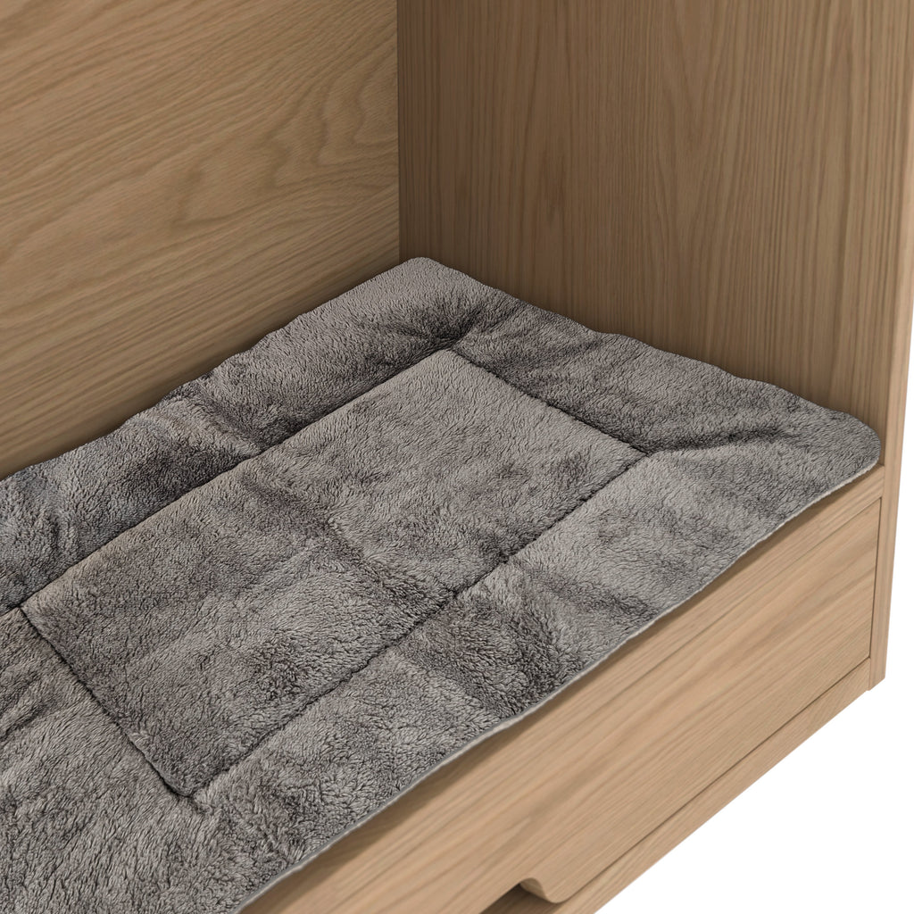 The 79 x 40 x 160 cm multifunctional cabinet combines modern furniture design with pet-friendly features. Specially designed for pet owners, this piece of furniture offers a built-in dog or cat bed, two stainless steel bowls in a pull-out drawer, and plenty of storage space for personal belongings. The height-adjustable shelves (adjustment range: approximately 12 cm) allow for flexible storage of food, accessories, or everyday items.