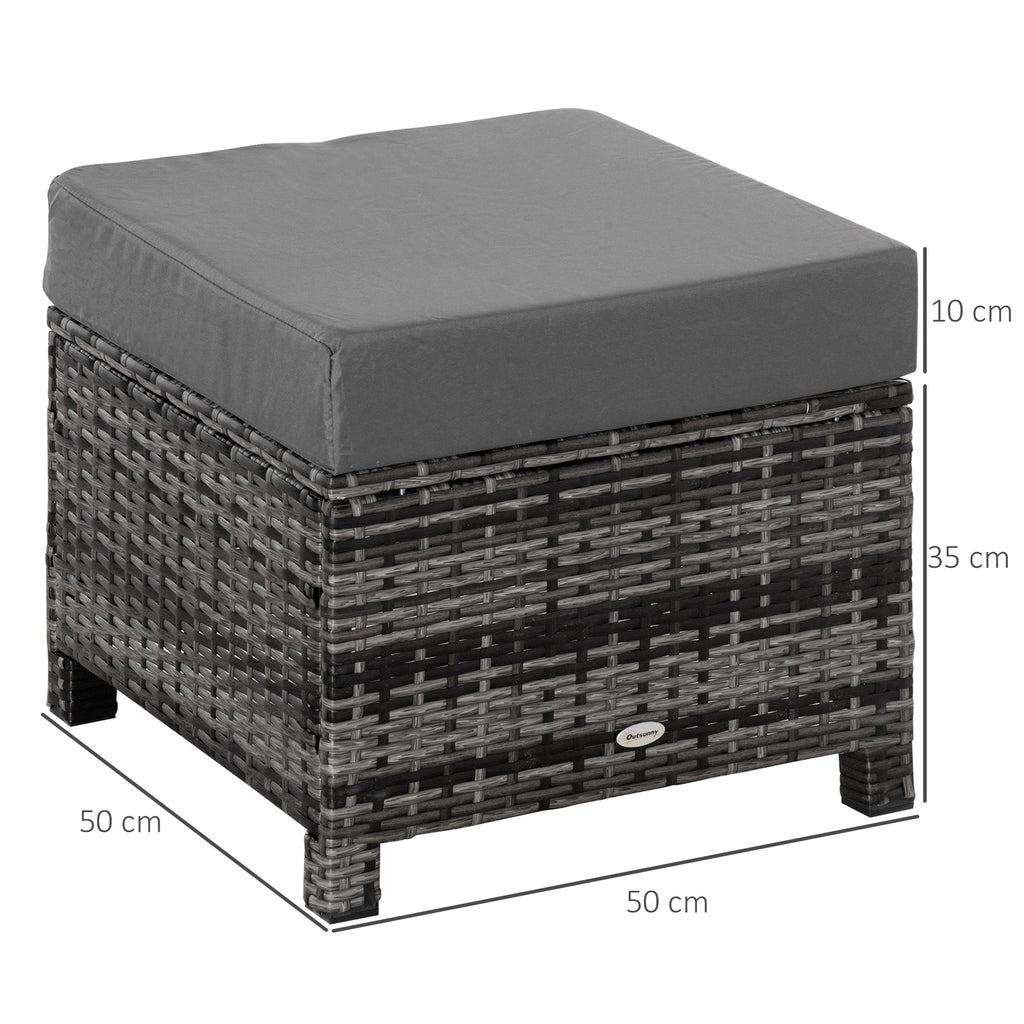 Rattan Footstool Wicker Ottoman with Padded Seat Cushion, Grey