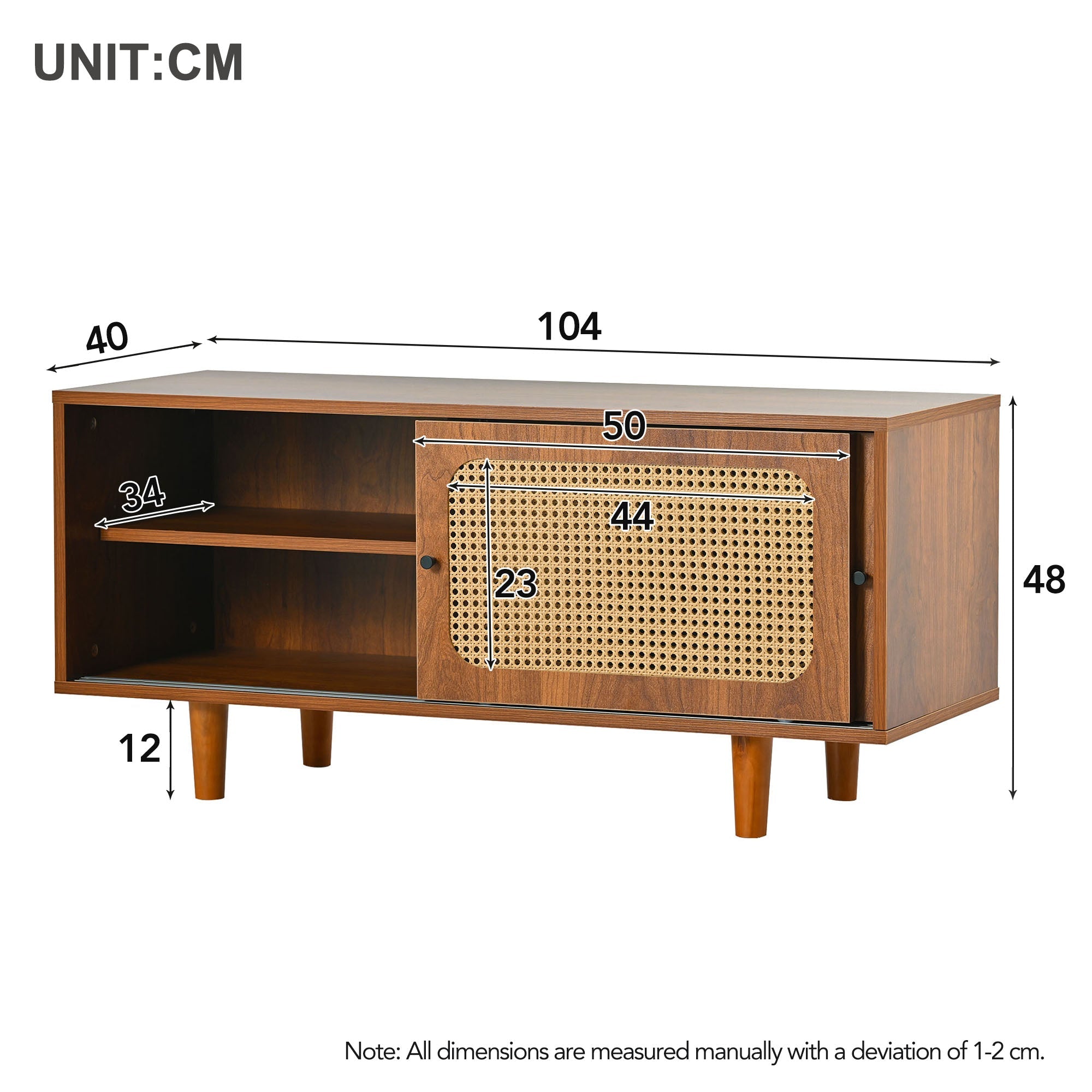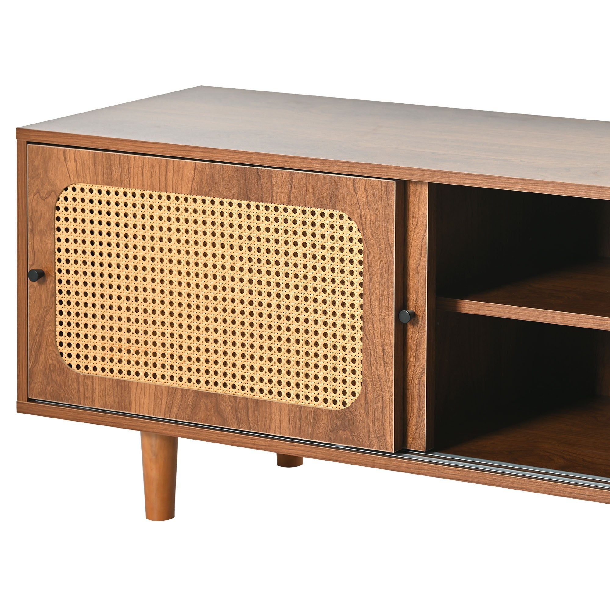 Rattan Sideboard Set, Living Room Chest & Shoe Cabinet, Walnut