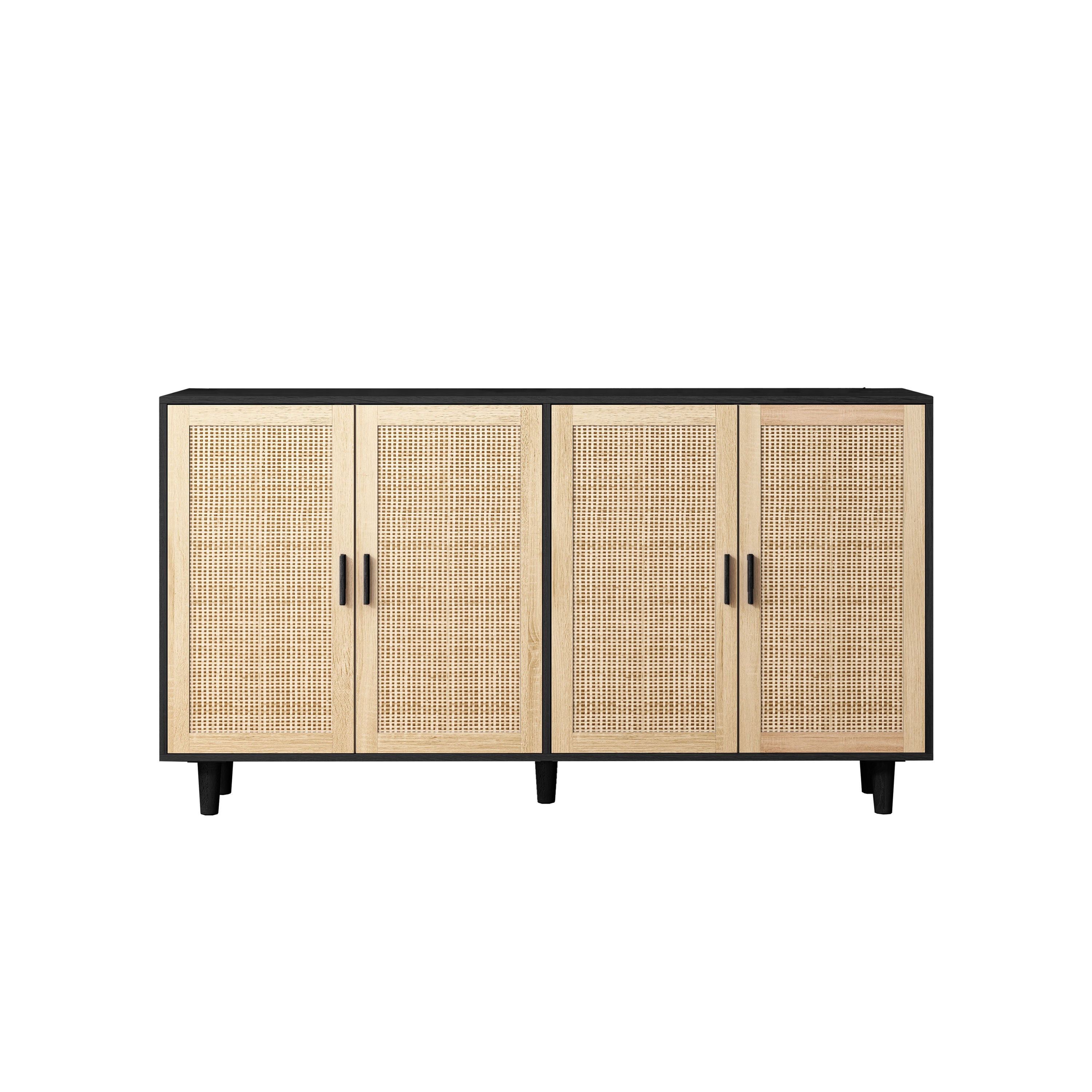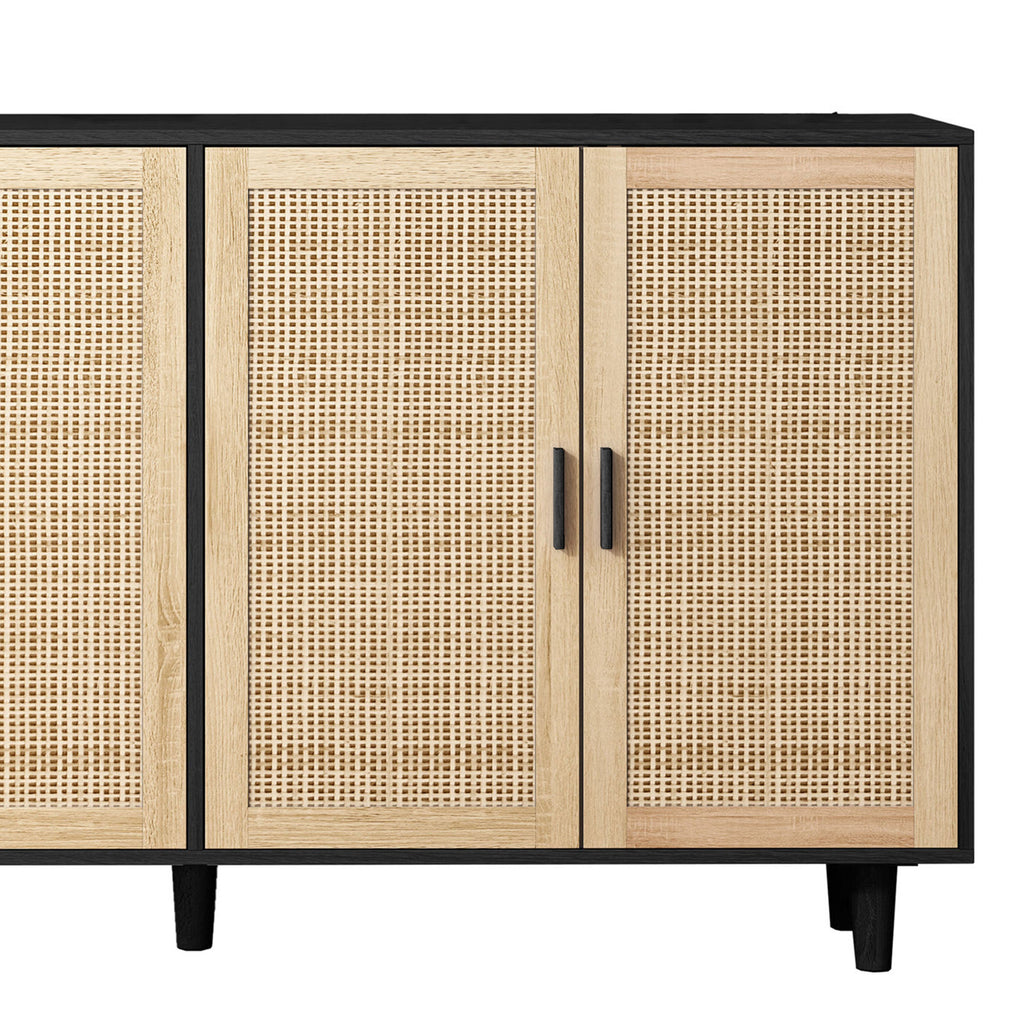 Rattan Storage Cabinet, 158cm 4-Door Decorative, Black