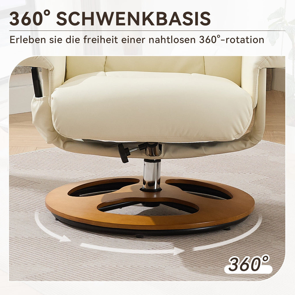 Recliner Chair with Massage, Heat, Reclining, Stool, 360° Rotatable, PU Fabric White