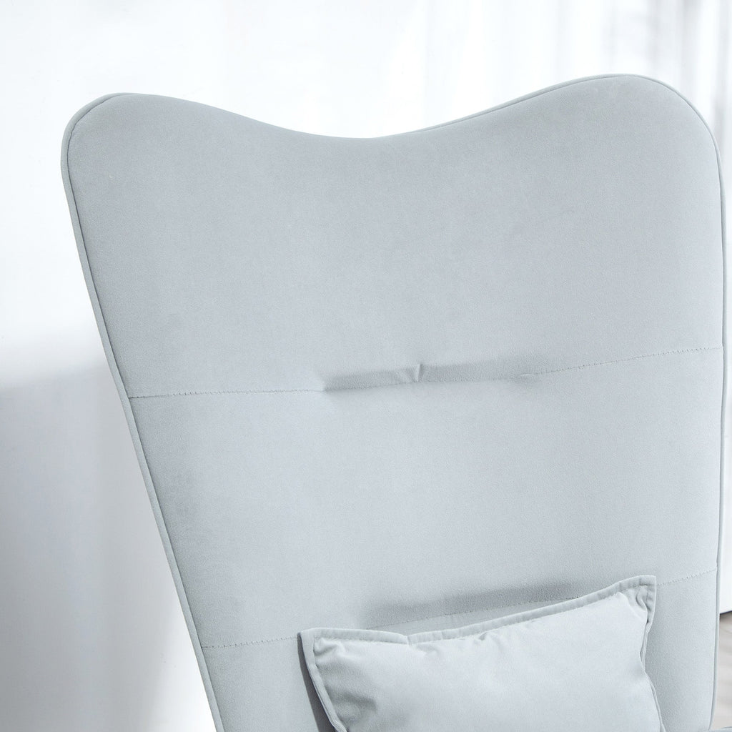 Rocking Chair, Armrests, Velvet Look, Light Grey