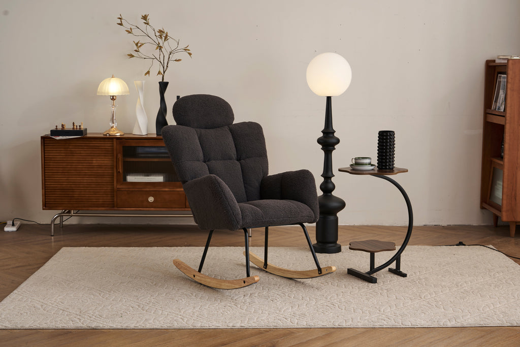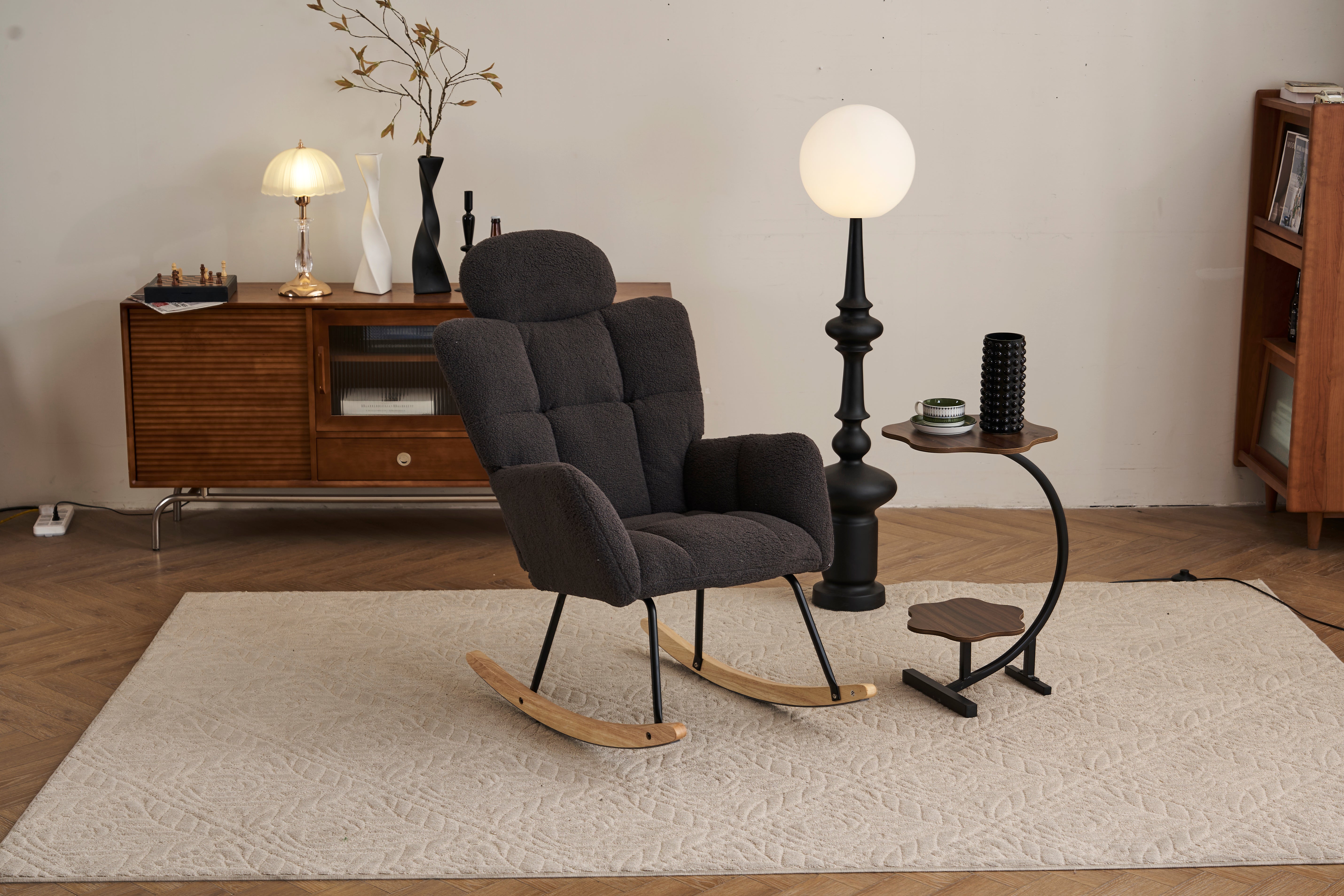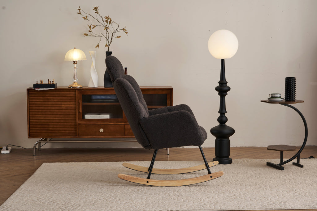Rocking Chair, Tufted Upholstered Seat, Dark Grey Teddy Fabric