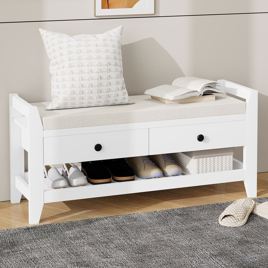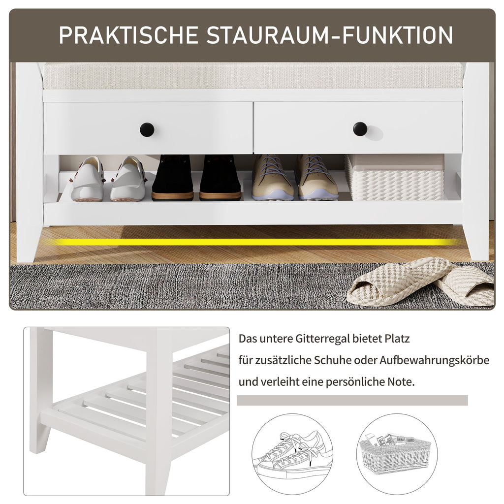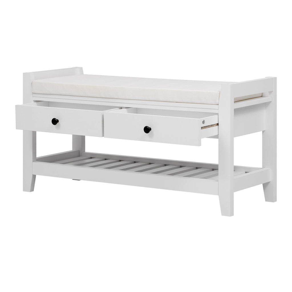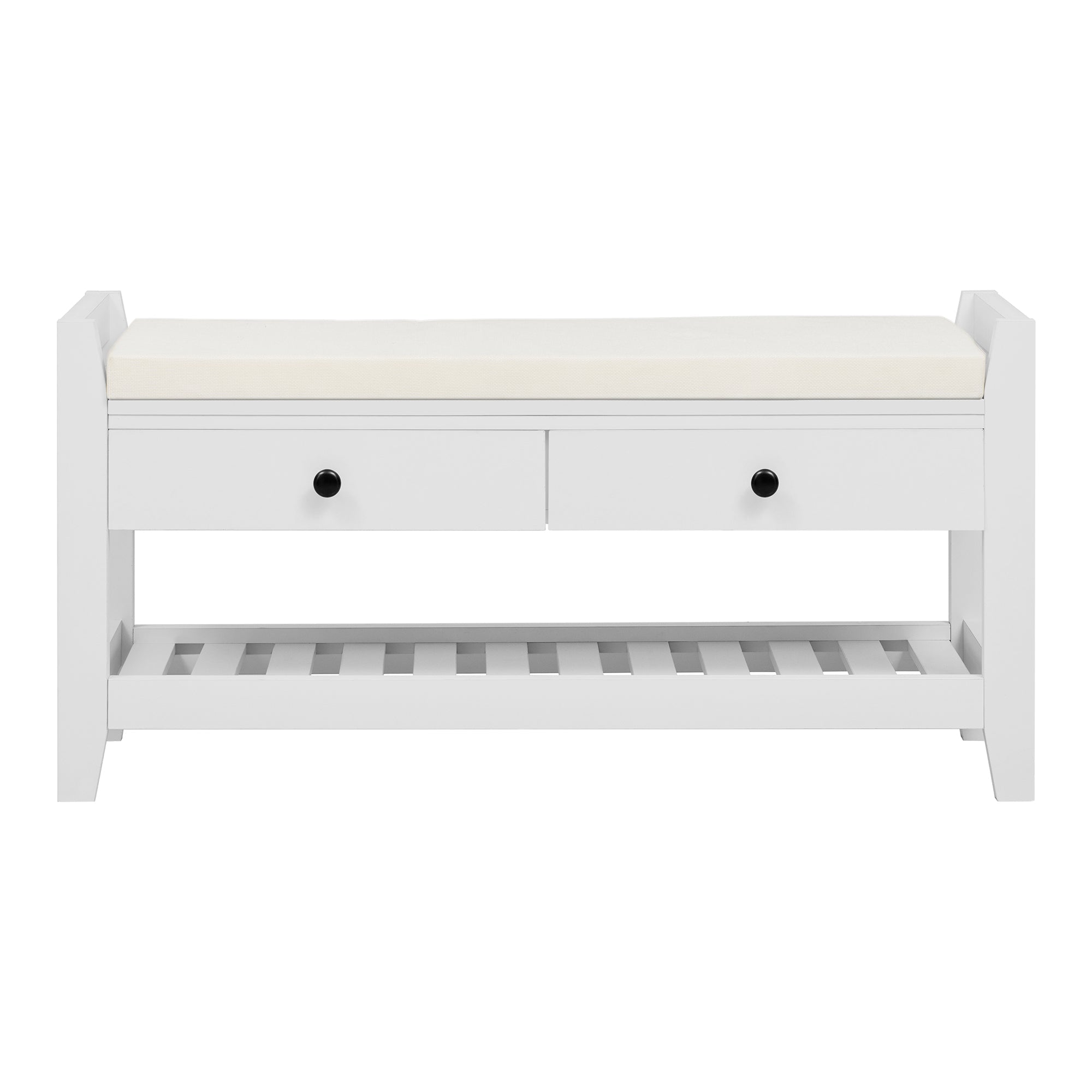 Shoe Bench with Seat, Storage, and Cushion Surface, White