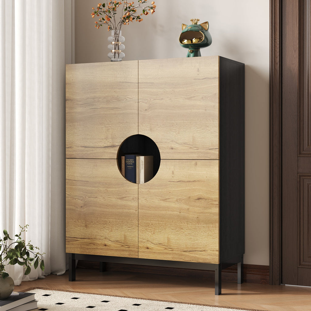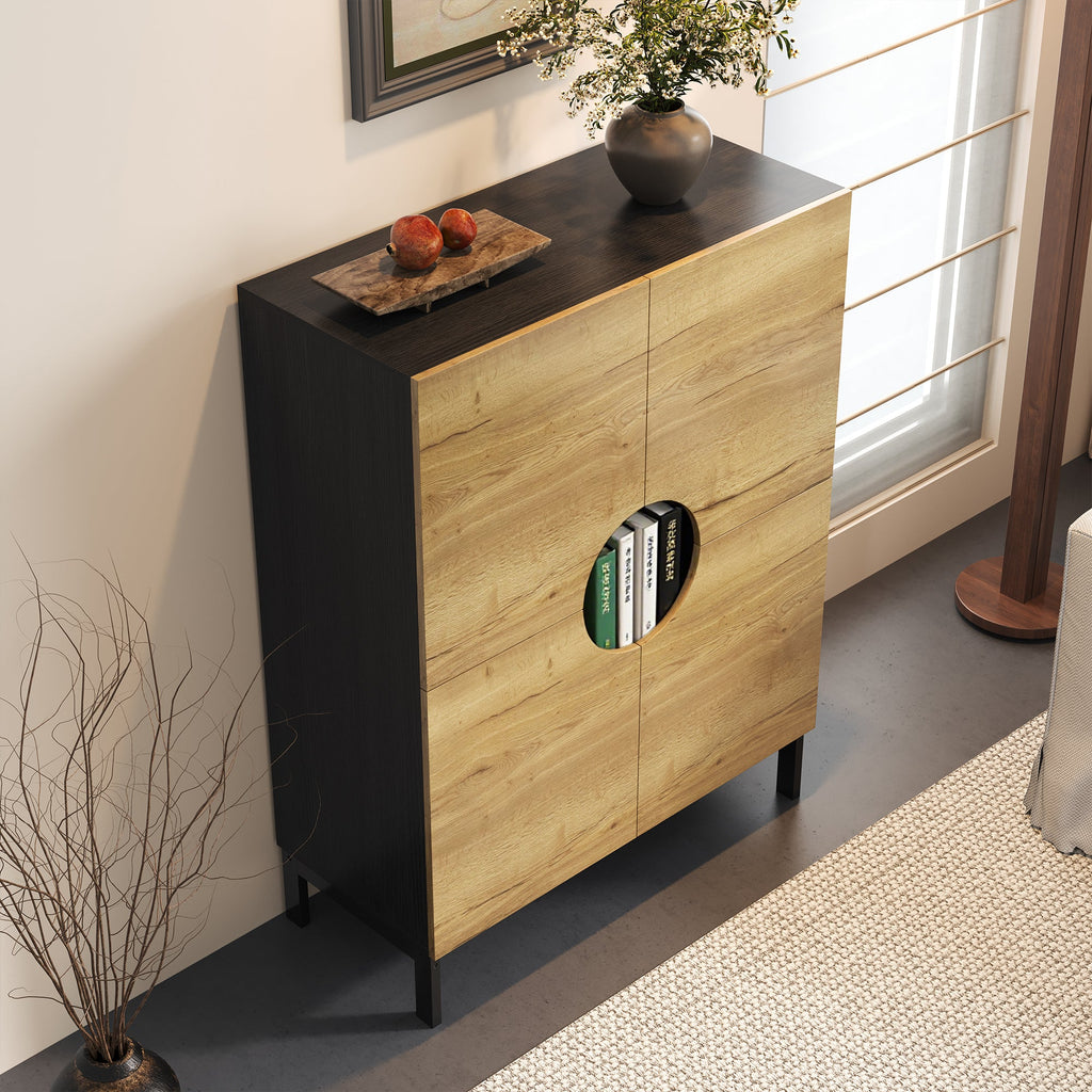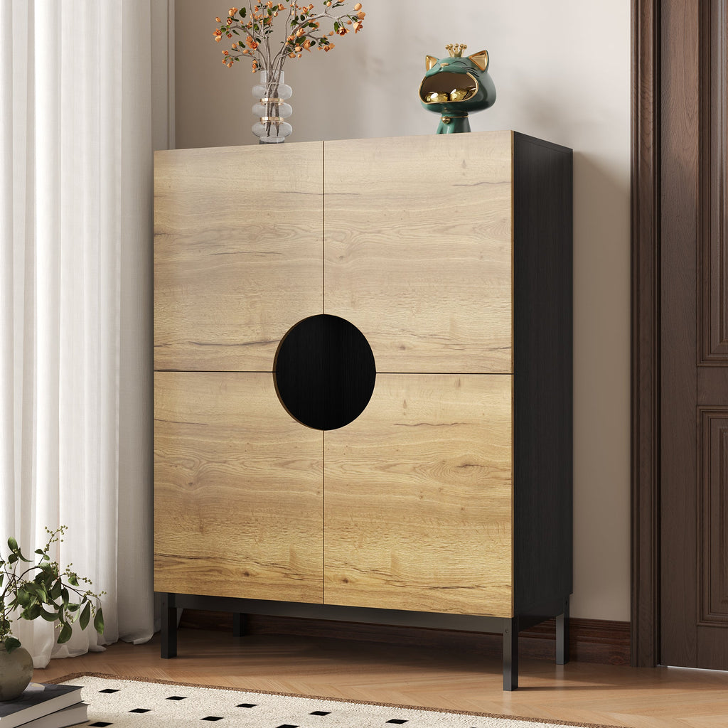 Shoe Cabinet & Display Cabinet 2-in-1, Adjustable Shelves, Solid Wood Legs, Wood Color