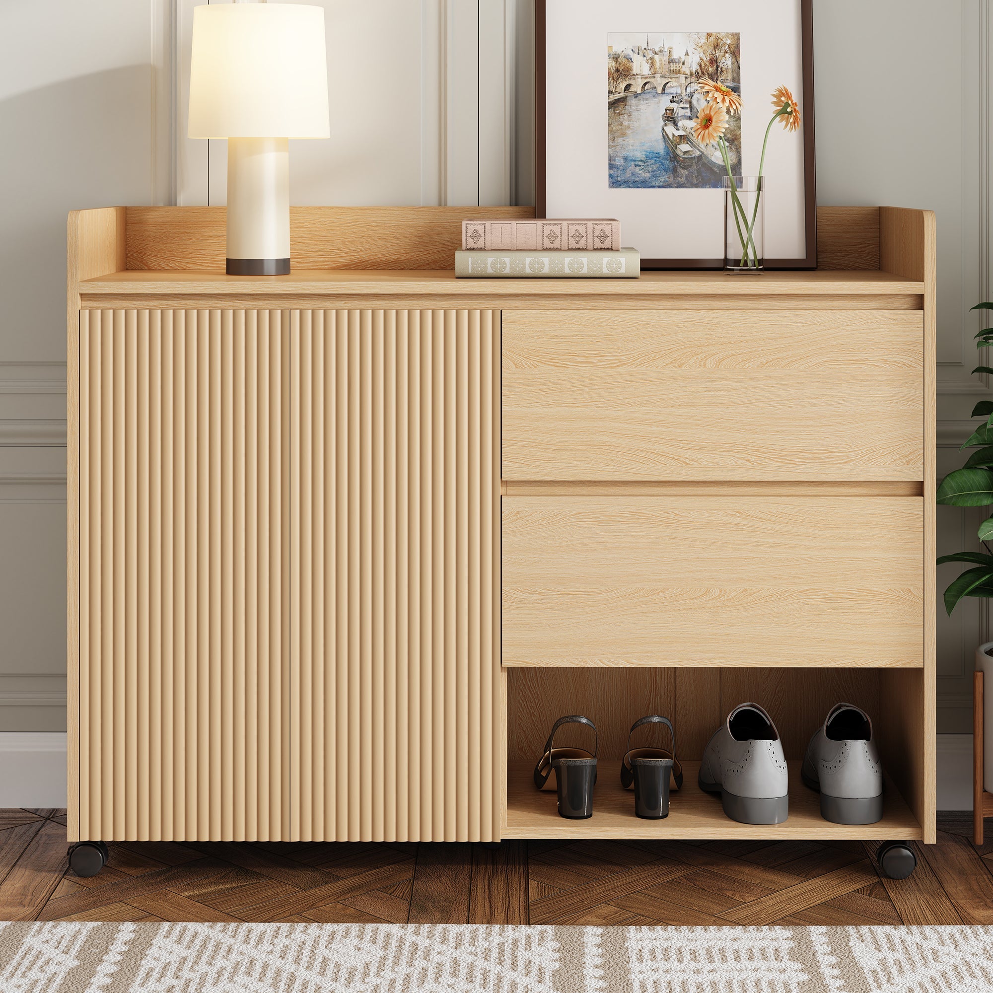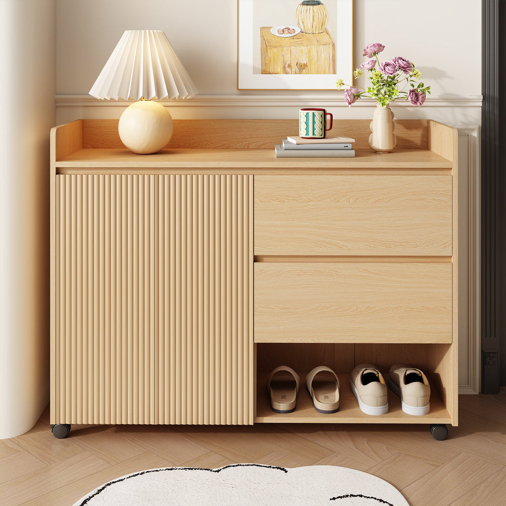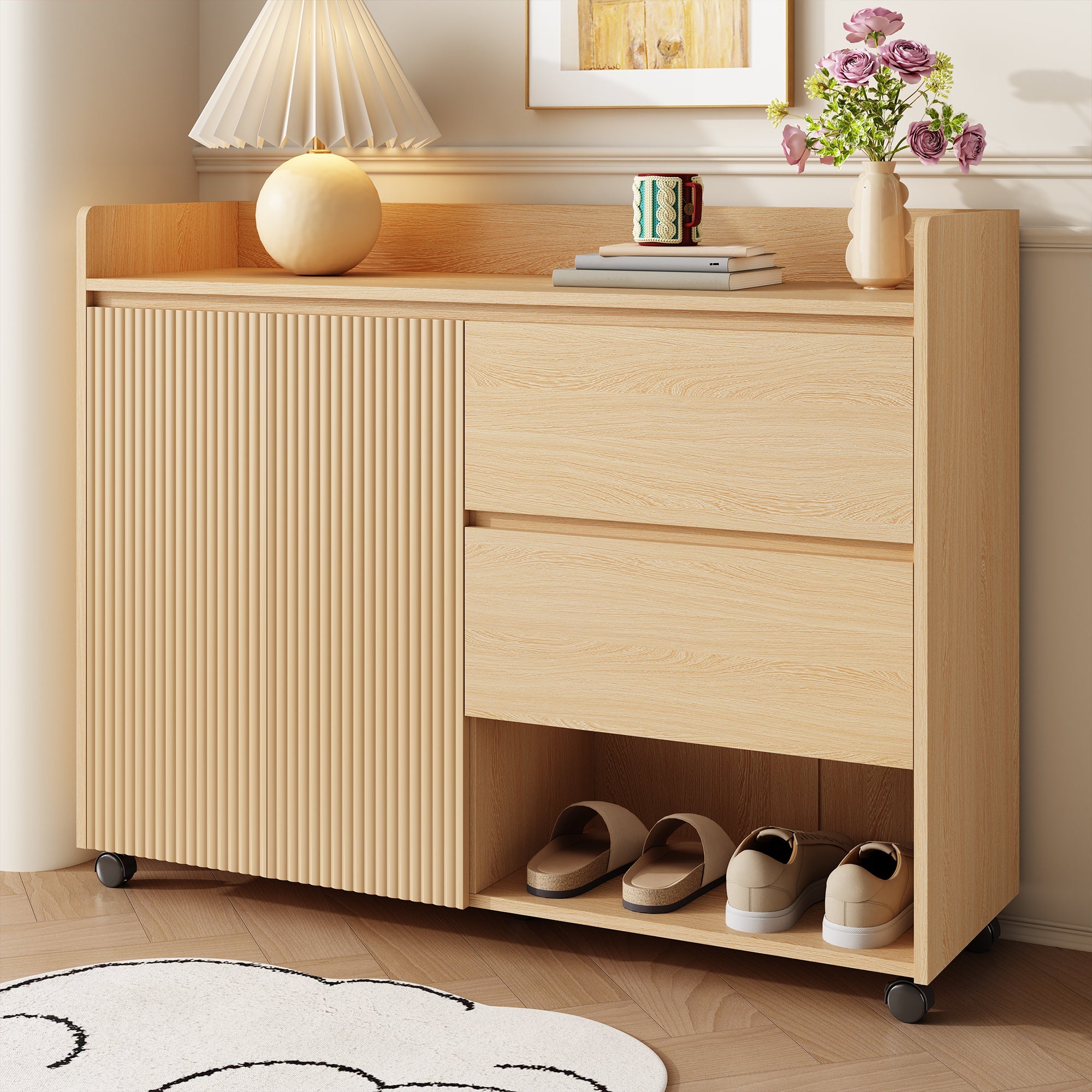 Shoe Cabinet, Movable with Adjustable Shelves, Soft-Closing Hinge, Natural MDF