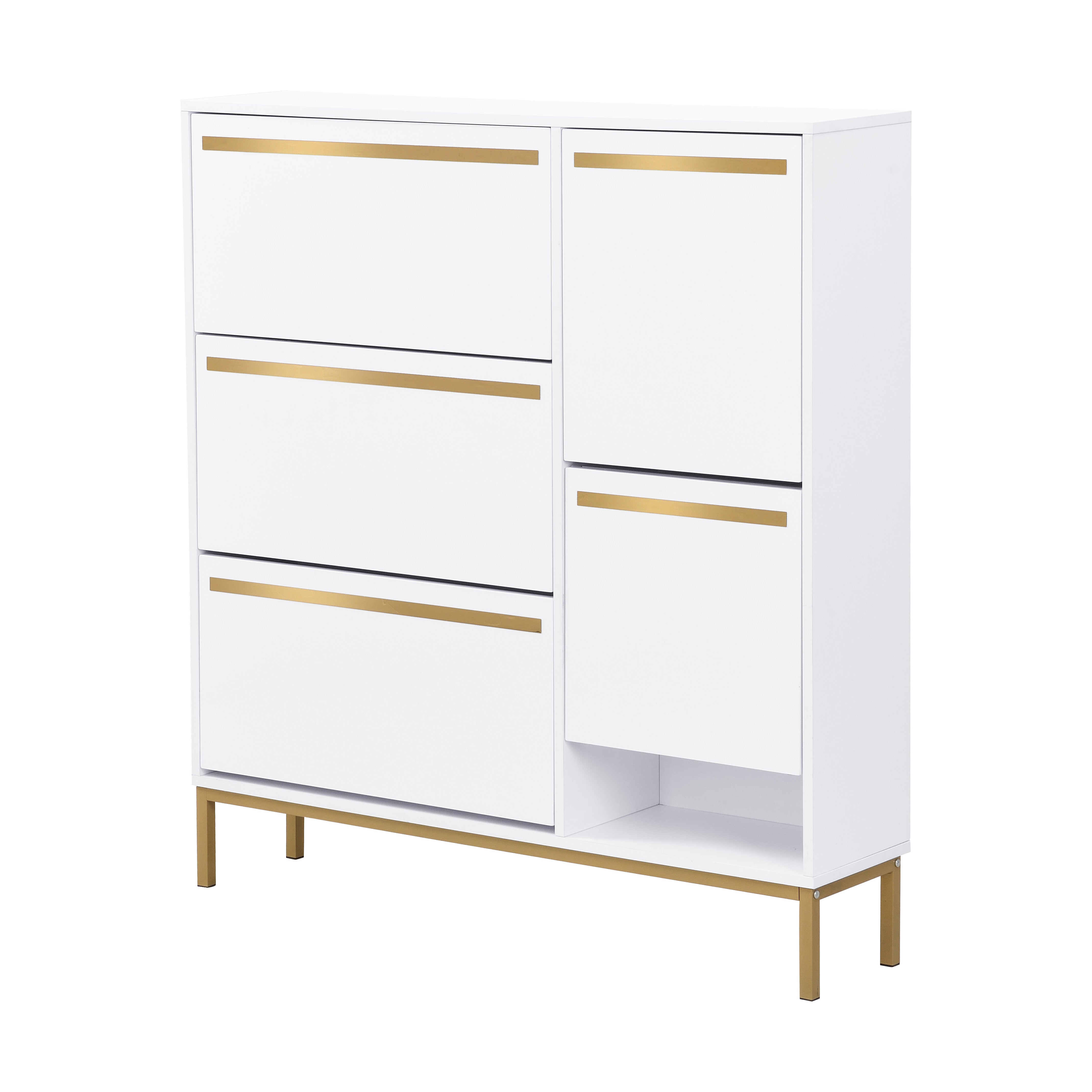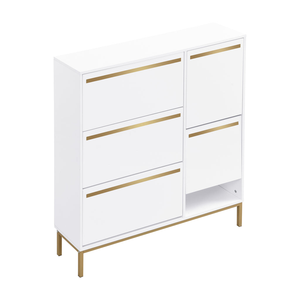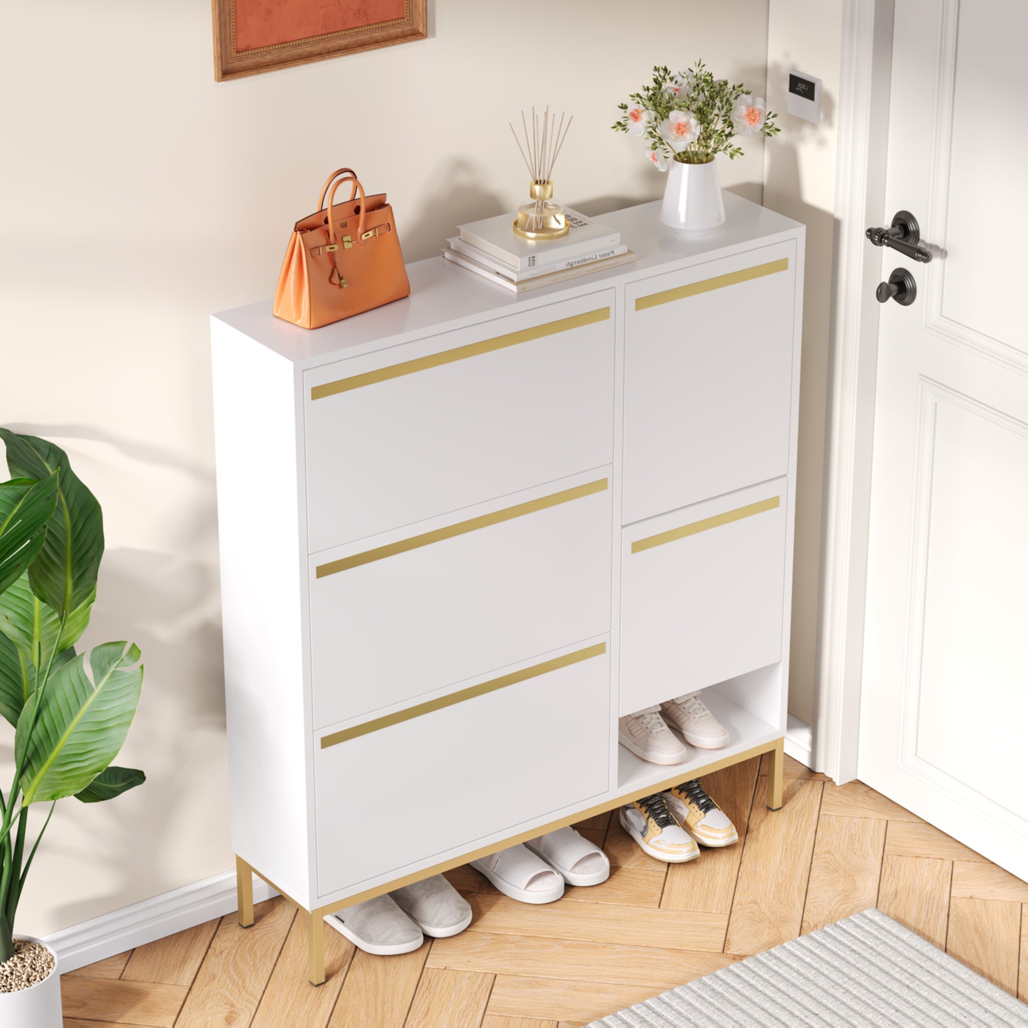 Shoe Cabinet, Three-Folding Rack & Open Storage, Glossy